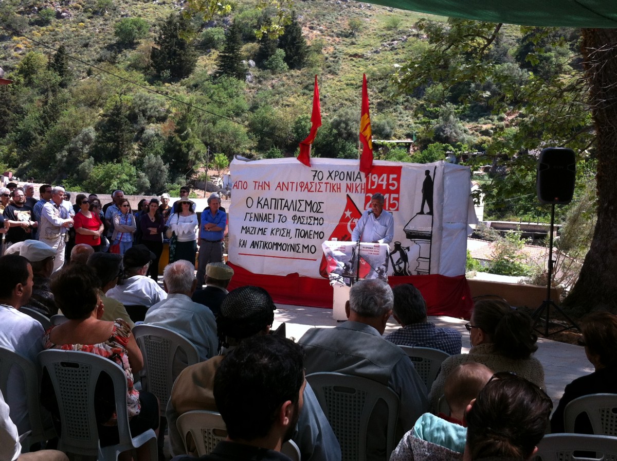 Με μεγάλη επιτυχία πραγματοποιήθηκε η πολιτική-πολιτιστική εκδήλωση που διοργάνωσαν την Κυριακή οι Τομεακές Επιτροπές Πόλης & Υπαίθρου Χανίων του ΚΚΕ αφιερωμένη στα 70 χρόνια από την Αντιφασιστική Νίκη των Λαών, στις 9 Μάη 1945.