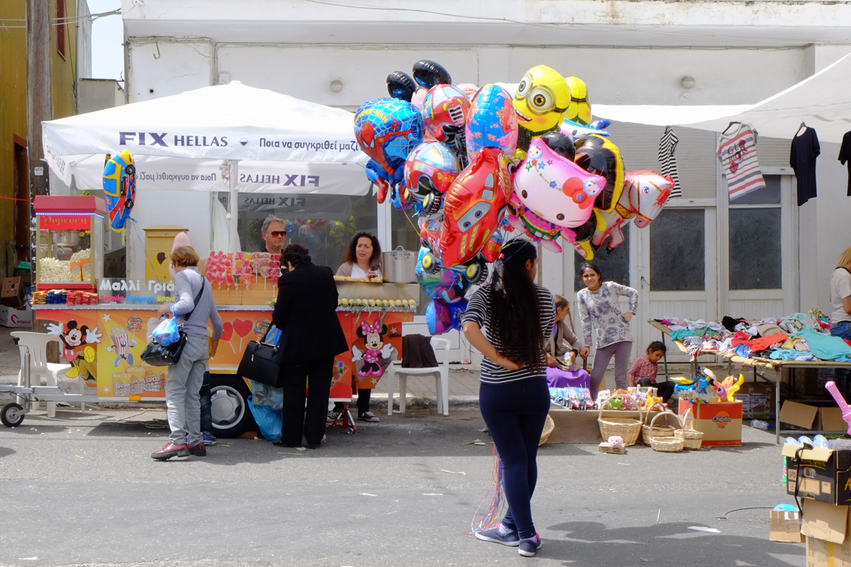Ρούχα, λαχανικά και φρούτα, αλλά και παιχνίδια για τα παιδιά υπήρχαν στο πανηγύρι ενώ σε σημεία οι πολίτες σταματούσαν για να γευτούν λουκουμάδες ή να αγοράσουν βραστά καλαμπόκια ή μαλλί της γριάς για τα παιδιά.