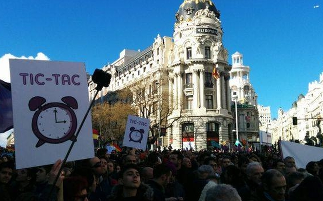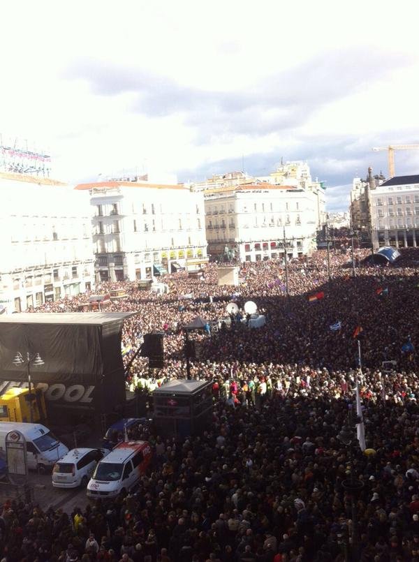 Κάθε προηγούμενο ξεπερνά η διαδήλωση που διοργανώθηκε από το κίνημα Podemos στη Μαδρίτη, καθώς οι δρόμοι στην ισπανική πρωτεύουσα είναι ασφυκτικά γεμάτοι από απλό κόσμο που ζητά μια πιο αξιοπρεπή ζωή μακριά από πολιτικές λιτότητας.