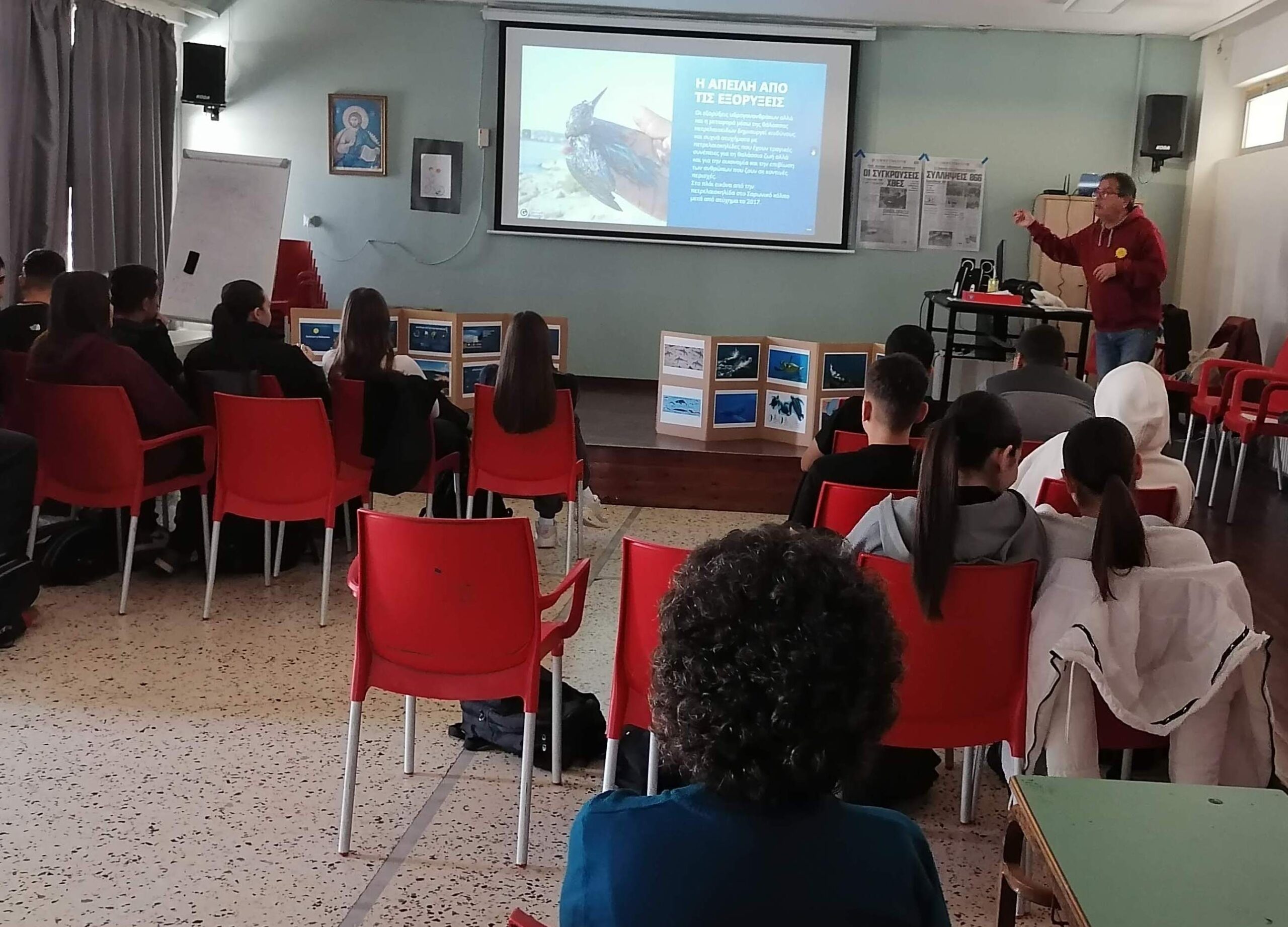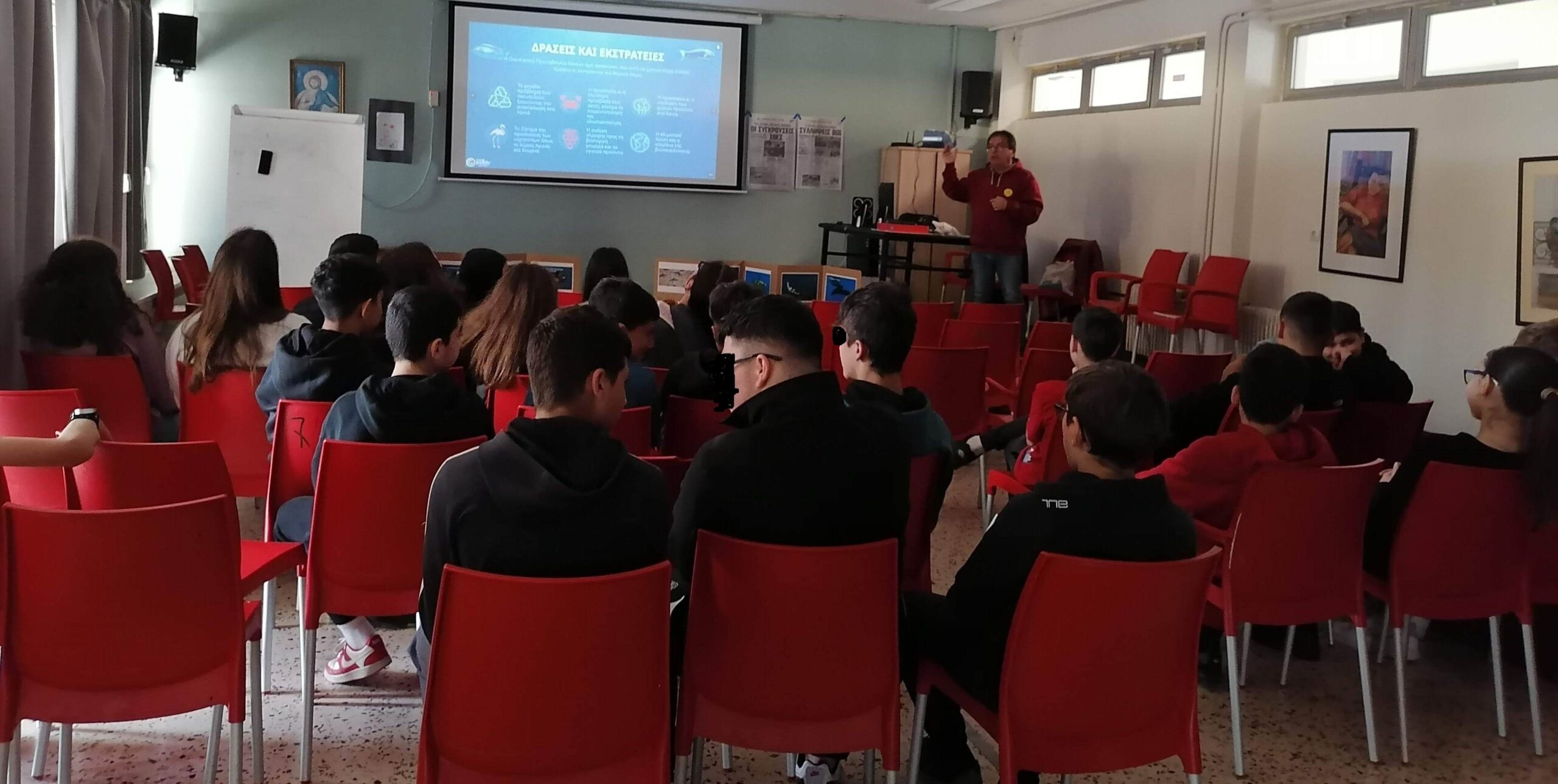 Μέλη της Οικολογικής Πρωτοβουλίας Χανίων βρέθηκαν στις 3 Μαρτίου 2026 στο Γυμνάσιο Σούδας και πραγματοποίησαν παρουσίαση για τη θάλασσα και τις ακτές σε μαθητές τριών τμημάτων (Α2, Β2, Γ2), αναδεικνύοντας τη σημασία της θάλασσας και των ακτών για την οικολογική ισορροπία και την ανθρώπινη ζωή.