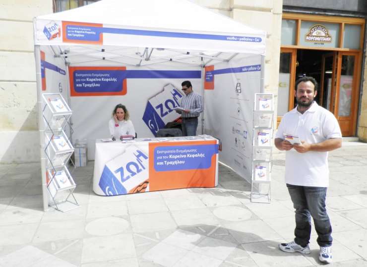 Όπως αναφέρεται σε σχετική ανακοίνωση, η Εταιρεία Ογκολόγων Παθολόγων Ελλάδας θα παρέχει ενημέρωση για τον καρκίνο κεφαλής και τραχήλου, από την Τετάρτη 27 έως την Παρασκευή 29 Απριλίου, στην πλατεία Δημοτικής Αγοράς, από τις 10 το πρωί έως τις 8 το βράδυ.
