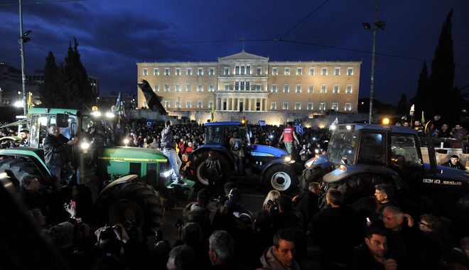 Χιλιάδες αγρότες παραμένουν στο Σύνταγμα και πολλοί θα διανυκτερεύσουν το βράδυ για να συμμετέχουν και στις αυριανές κινητοποιήσεις.