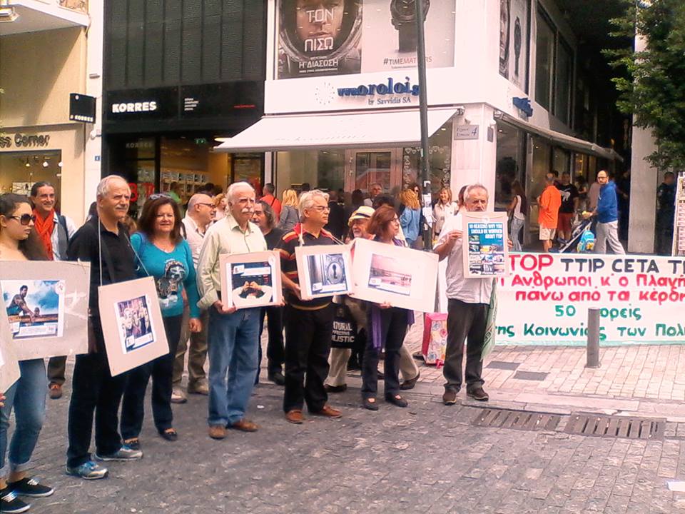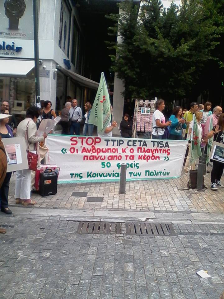 Με παρουσία αρκετών πολιτών πραγματοποιήθηκε η δράση που οργάνωσε το Σάββατο η Ελληνική Πρωτοβουλία STOP TTIP CETA TiSA  στην  Αθήνα, «Εμπόριο υπέρ των ανθρώπων και όχι των πολυεθνικών» με κεντρικά συνθήματα: