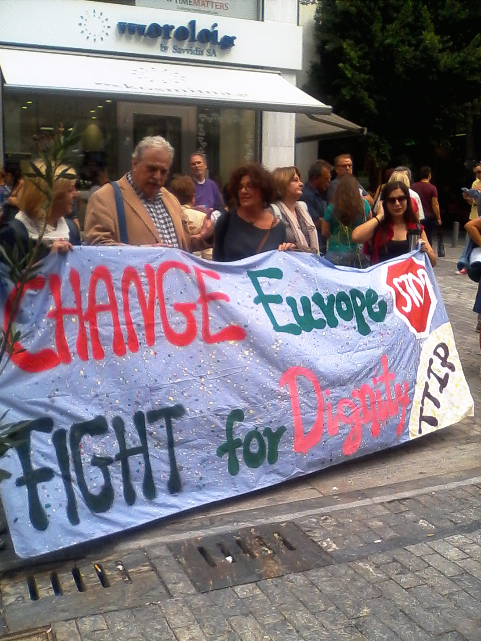 • ΟΧΙ στις πολιτικές λιτότητας, όχι στη φτώχεια, τη Συμφωνία Διατλαντικού Εμπορίου (ΤΤΙΡ), το ρατσισμό και τη διαφθορά