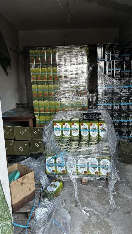 Κατά τις έρευνες, εντοπίστηκε εργαστήριο παρασκευής και τυποποίησης νοθευμένων ελαίων, όπου τα μέλη της εγκληματικής οργάνωσης, τουλάχιστον από τον Νοέμβριο του 2024, πραγματοποιούσαν τη νοθεία ηλιελαίου, στο οποίο πρόσθεταν χρωστικές και αρωματικές ουσίες, προκειμένου να προσομοιάζει με ελαιόλαδο.