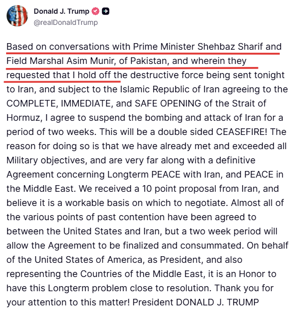 Σύμφωνα με την επίσημη εκδοχή της αμερικανικής διοίκησης, ο Πρόεδρος Τραμπ προχώρησε στην επέκταση του χρονοδιαγράμματος ανταποκρινόμενος σε προσωπική παράκληση του Πακιστανού ομολόγου του. Η κίνηση αυτή παρουσιάστηκε ως μια πράξη διπλωματικής αβροφροσύνης και στρατηγικής συνεργασίας, με στόχο την παροχή επιπλέον χρόνου για την ολοκλήρωση των απαραίτητων διαδικασιών.