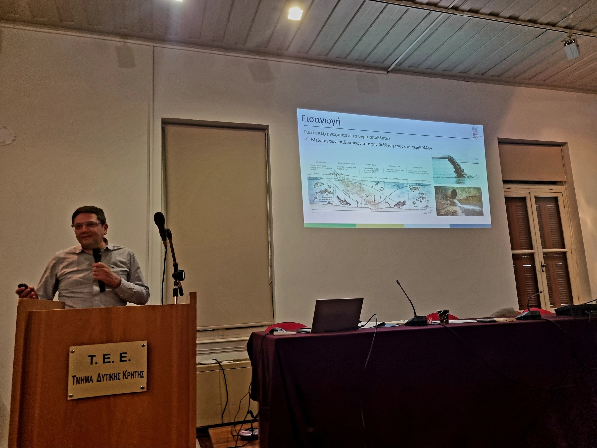 Ο κ. Φουντουλάκης, που διδάσκει στο Πολυτεχνείο Κρήτης τον τελευταίο χρόνο, τόνισε πως οι βιολογικοί καθαρισμοί δεν πρέπει να αντιμετωπίζονται ως απλή υποχρέωση, αλλά ως εργαλεία περιβαλλοντικής βιωσιμότητας που μπορούν να μειώσουν δραστικά το αποτύπωμα των πόλεων.