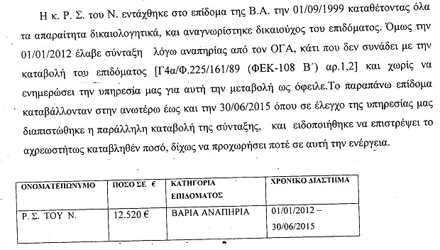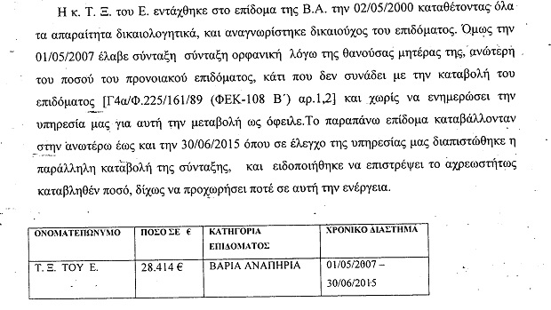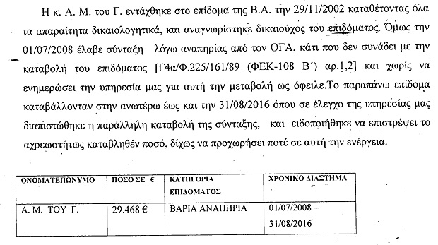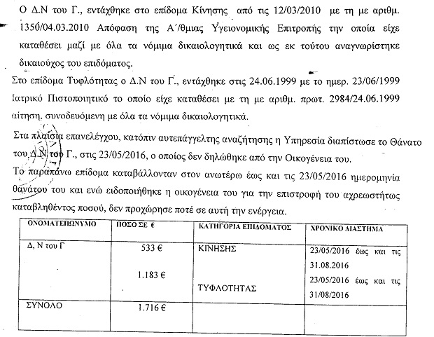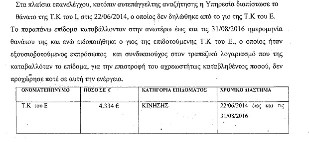 Σε μία περίπτωση μάλιστα πολίτης έπαιρνε επίδομα για λογαριασμό της μητέρας του, η οποία είχε πεθάνει τρία χρόνια νωρίτερα.