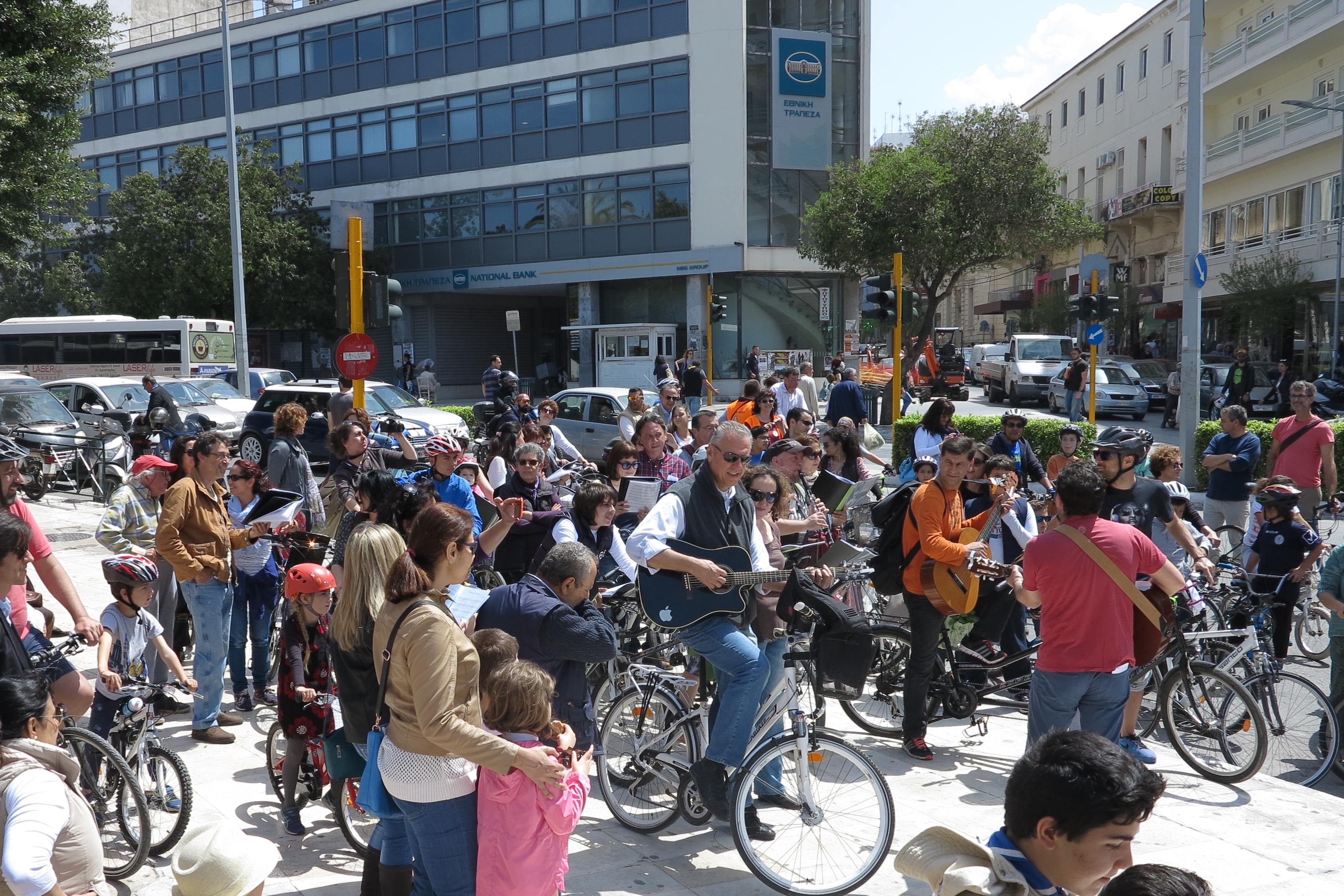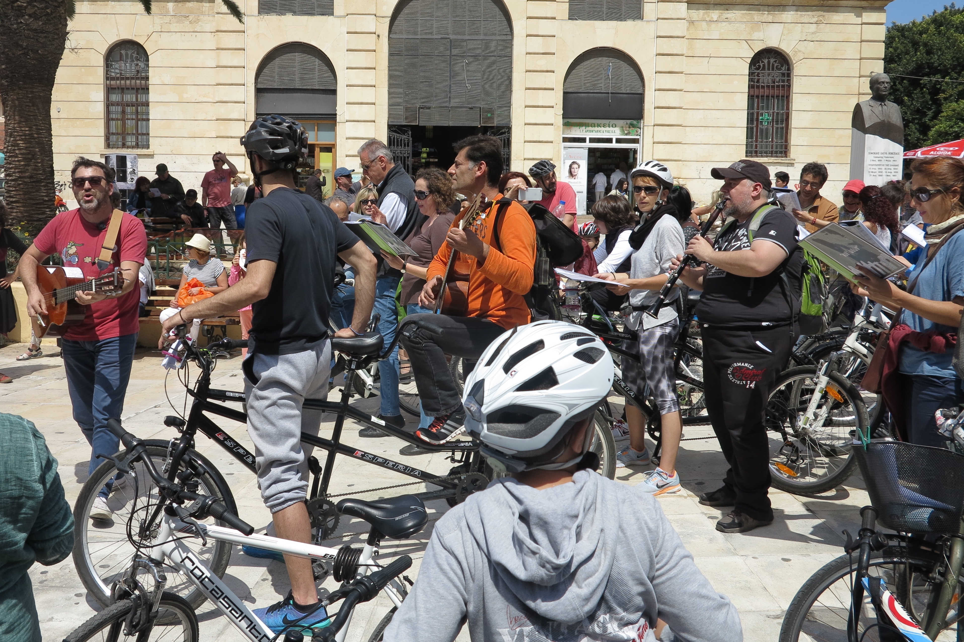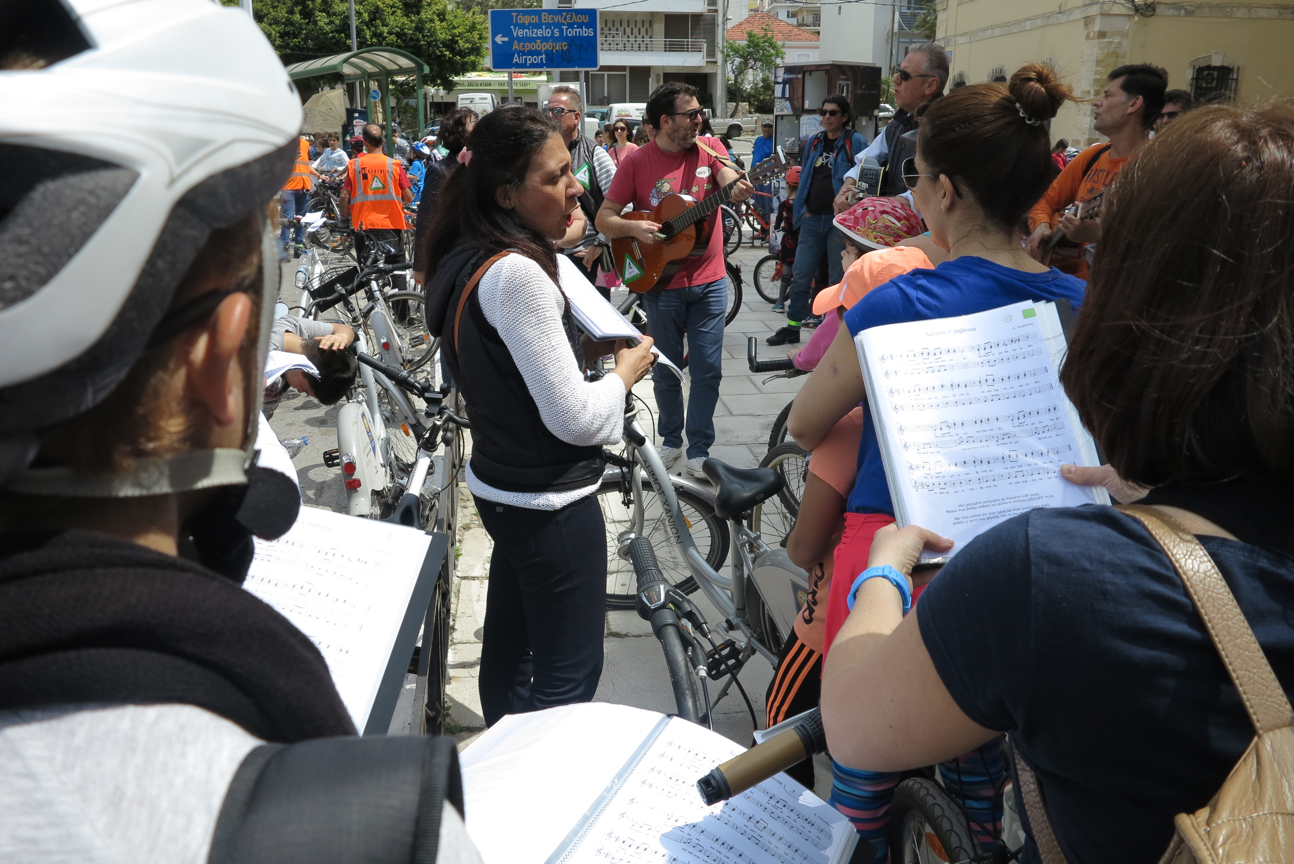 Η μουσική ομάδα του 2ου γυμνασίου “καθ’ ωδών”, μαζί με τους “ΠοδηΛάτρεις” και μέλη του αθλητικού σωματείου ΑΜΕΑ ΑΡΙΩΝ τραγούδησαν ποδηλατώντας στους δρόμους της πόλης.