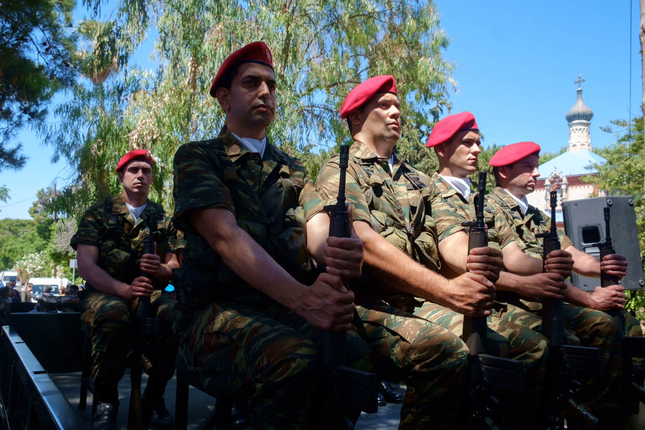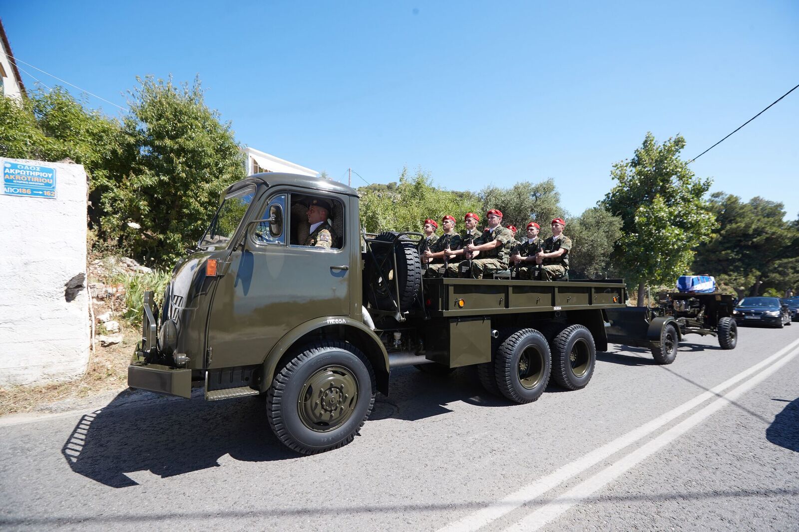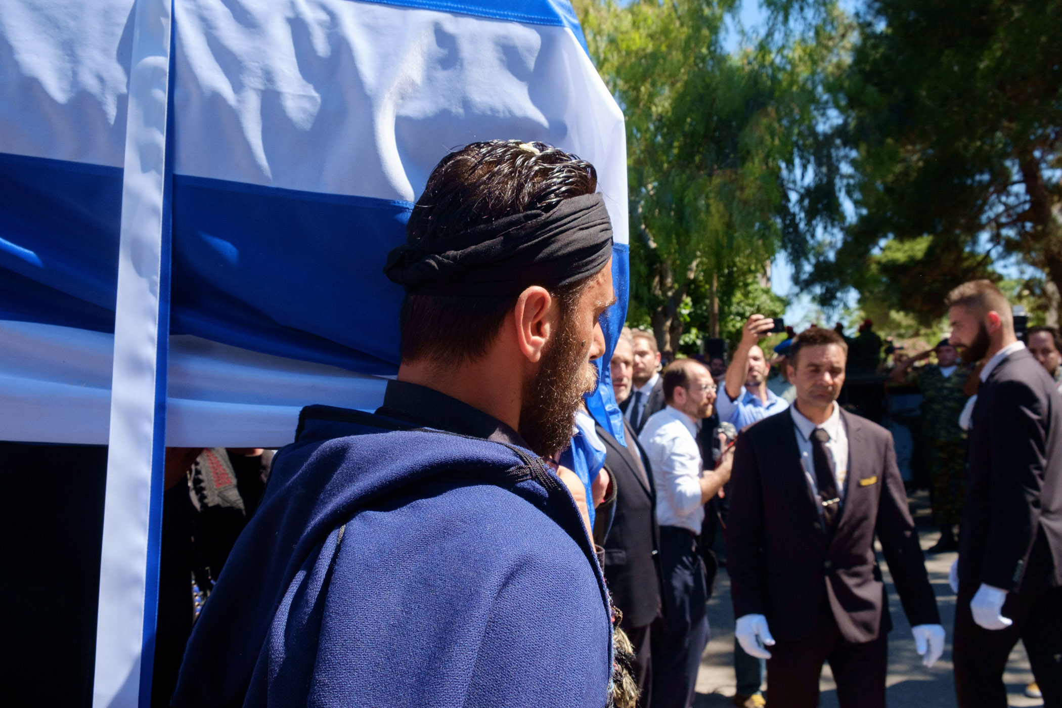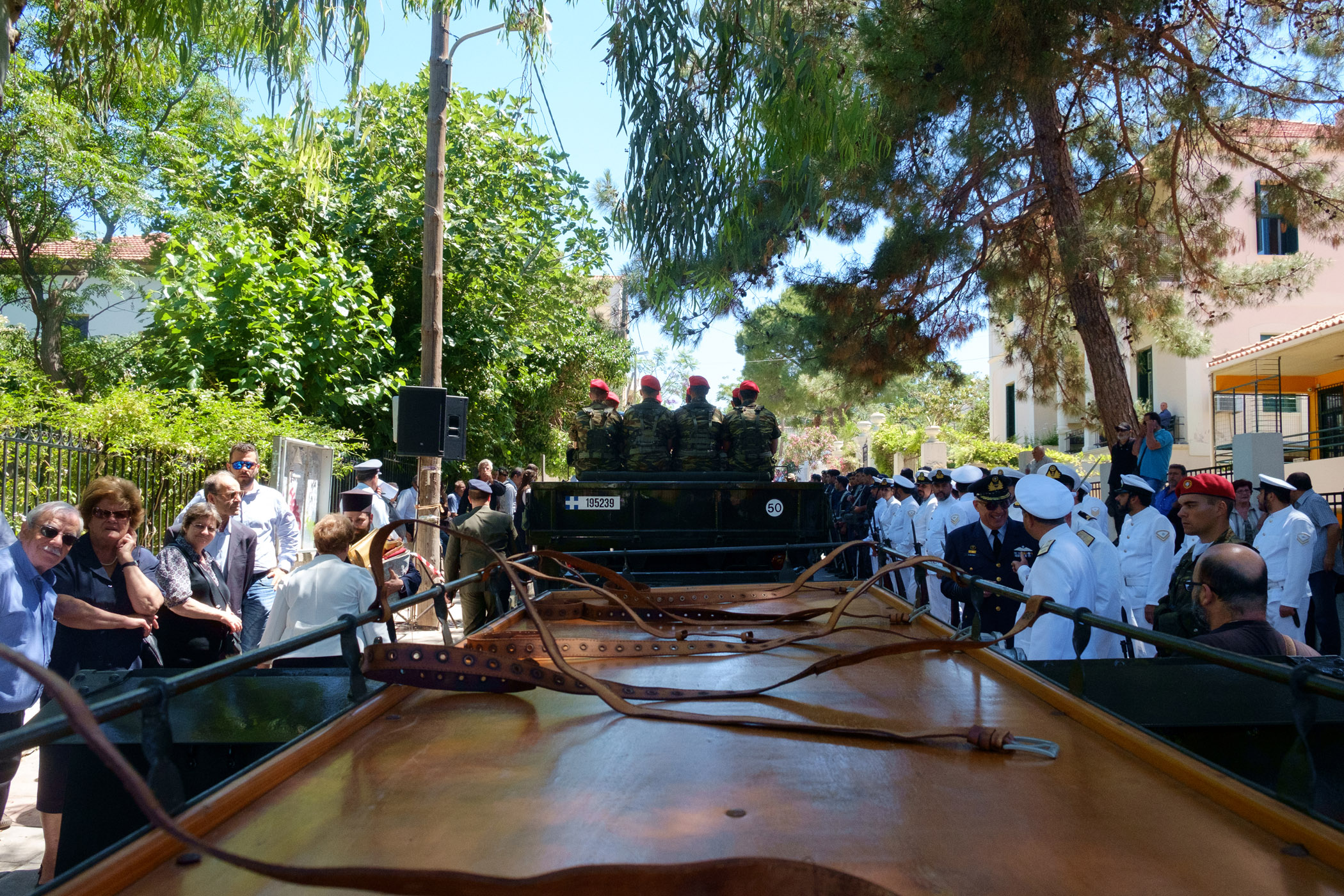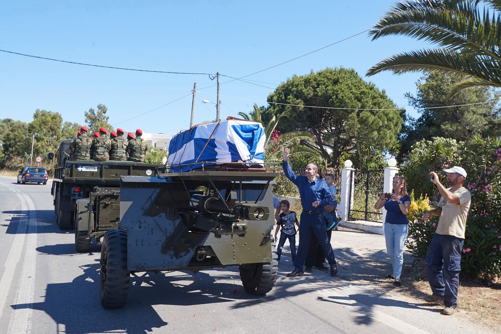 Βρακοφόροι πήραν στους ώμους τους το τυλιγμένο με την ελληνική σημαία φέρετρο και το επαπόθεσαν σε κιλλίβαντα πυροβόλου όπλου ενώ το συγκεντρωμένο πλήθος χειροκροτούσε.