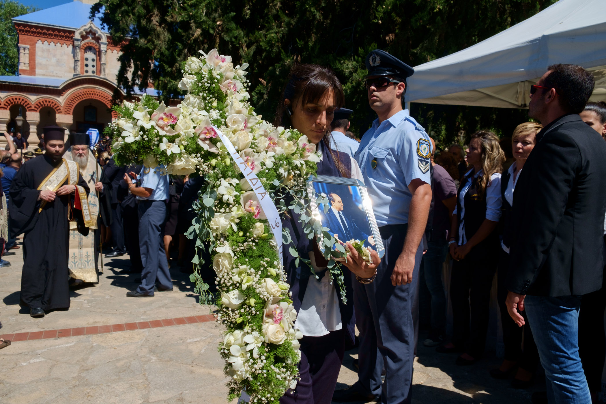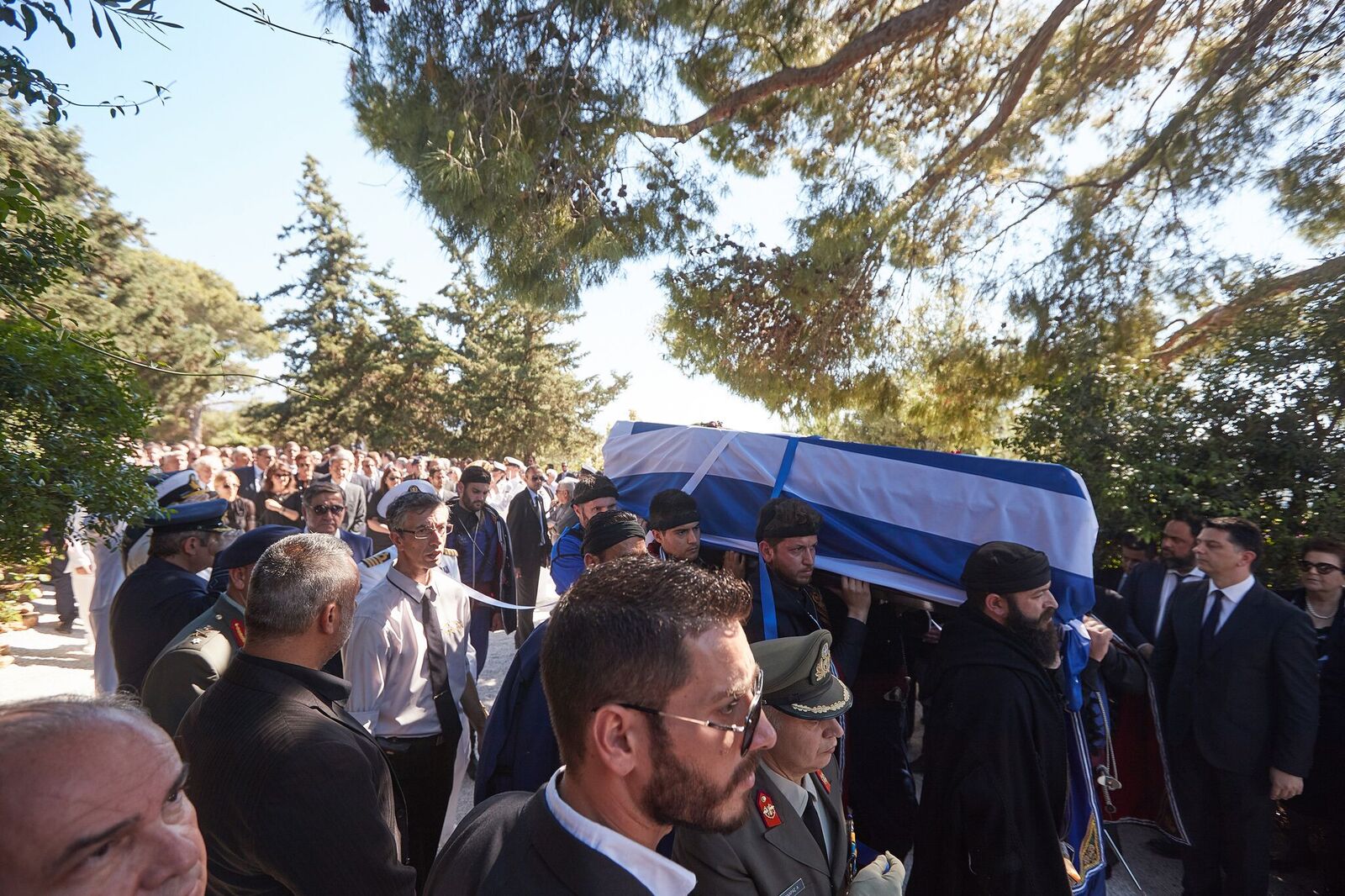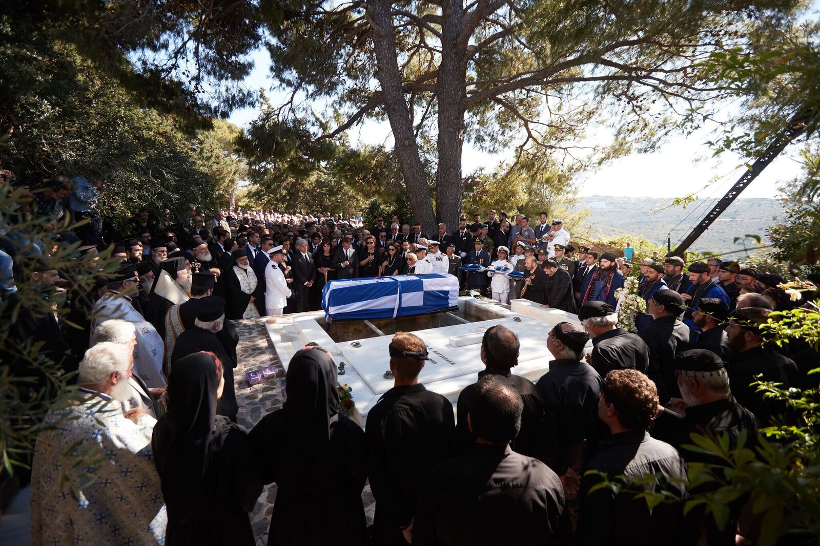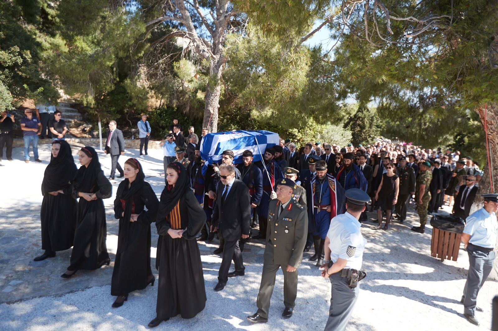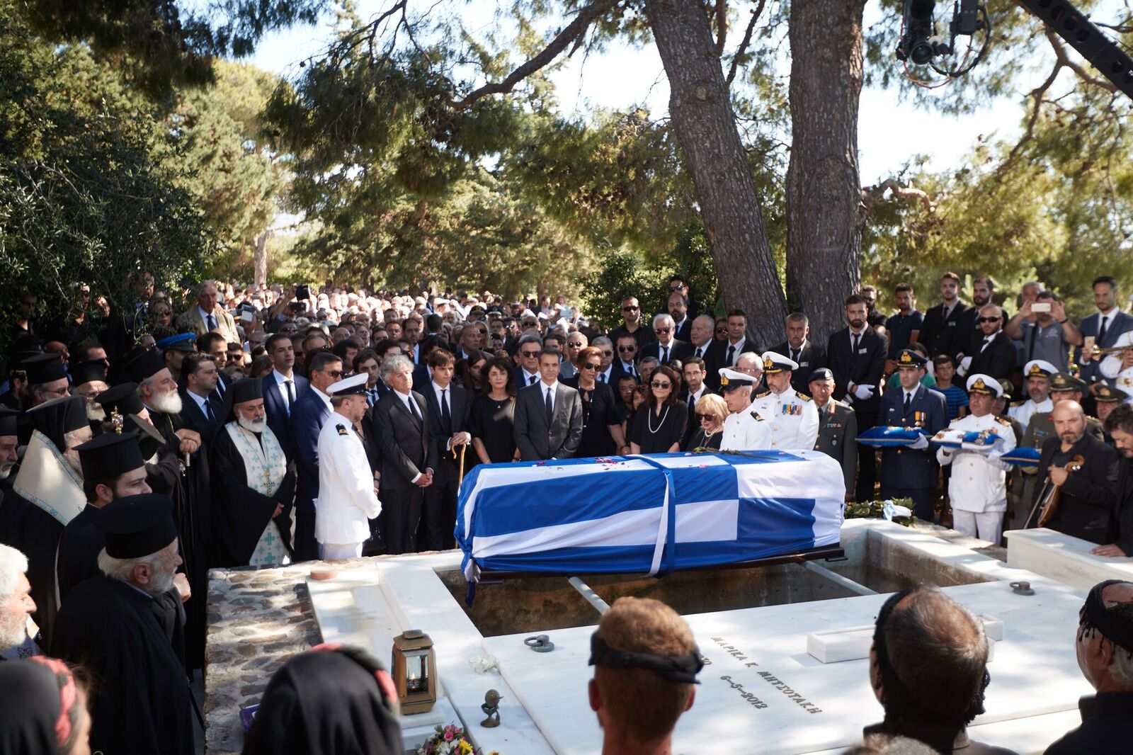 Ο γιος του Κυριάκου Μητσοτάκη εναπόθεσε μία κατσούνα στο φέρετρο ενώ λίγο πριν το τέλος οι παρευρισκόμενοι τραγούδησαν τον εθνικό ύμνο και φώναξαν δυνατά «Αθάνατος».