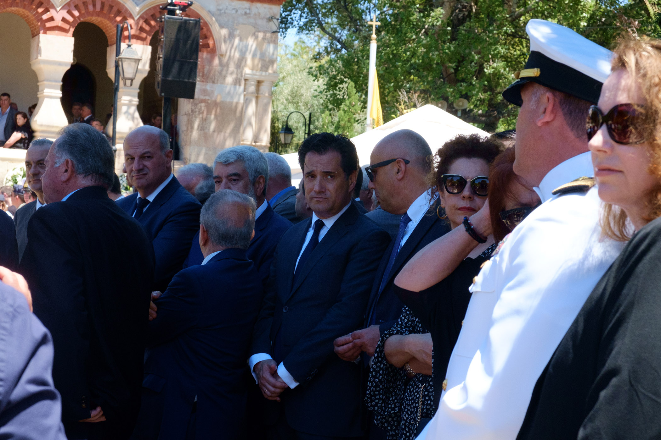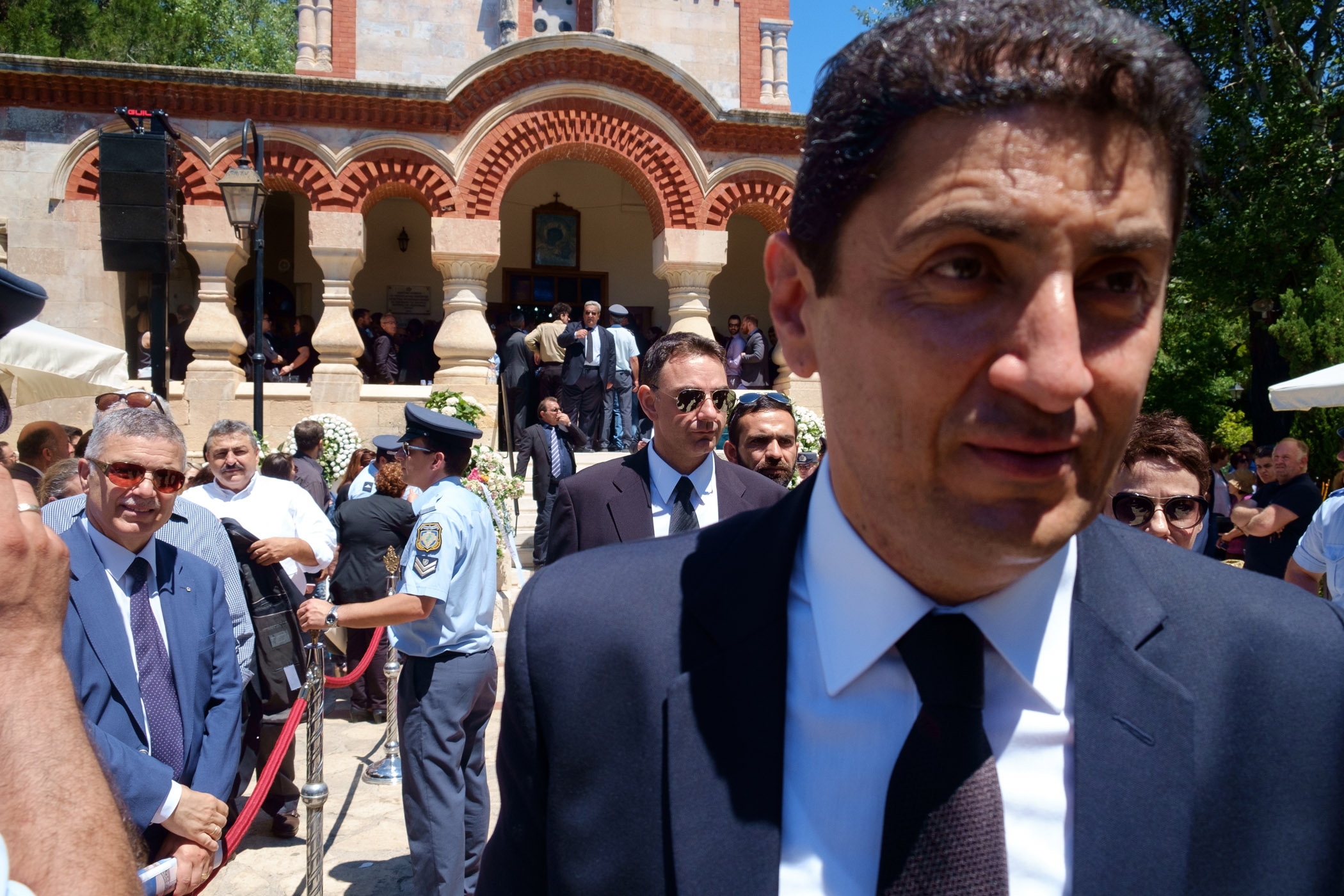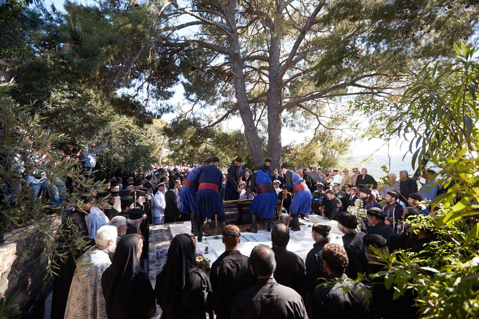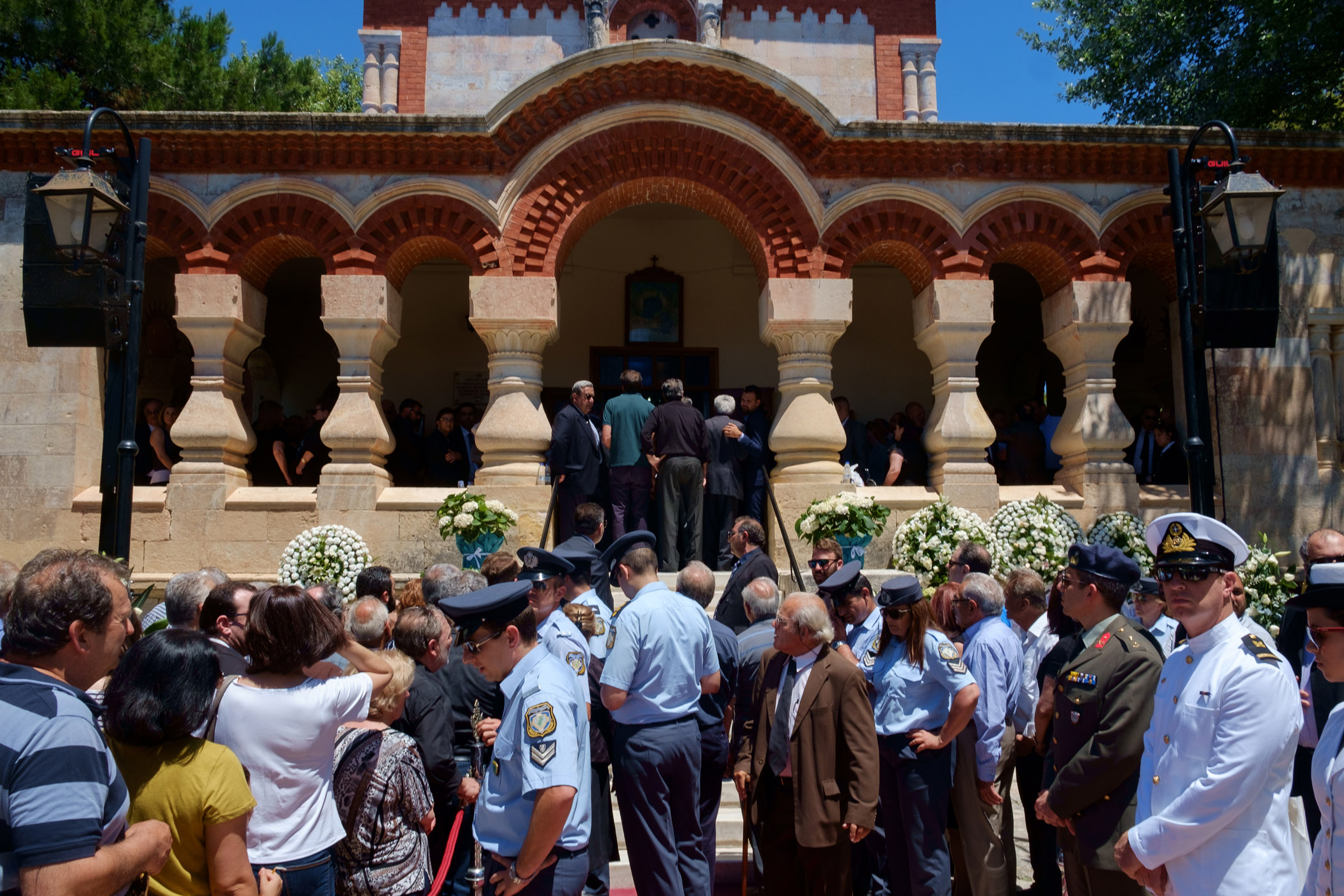 Ο γιος του Κυριάκου Μητσοτάκη εναπόθεσε μία κατσούνα στο φέρετρο ενώ λίγο πριν το τέλος οι παρευρισκόμενοι τραγούδησαν τον εθνικό ύμνο και φώναξαν δυνατά «Αθάνατος».