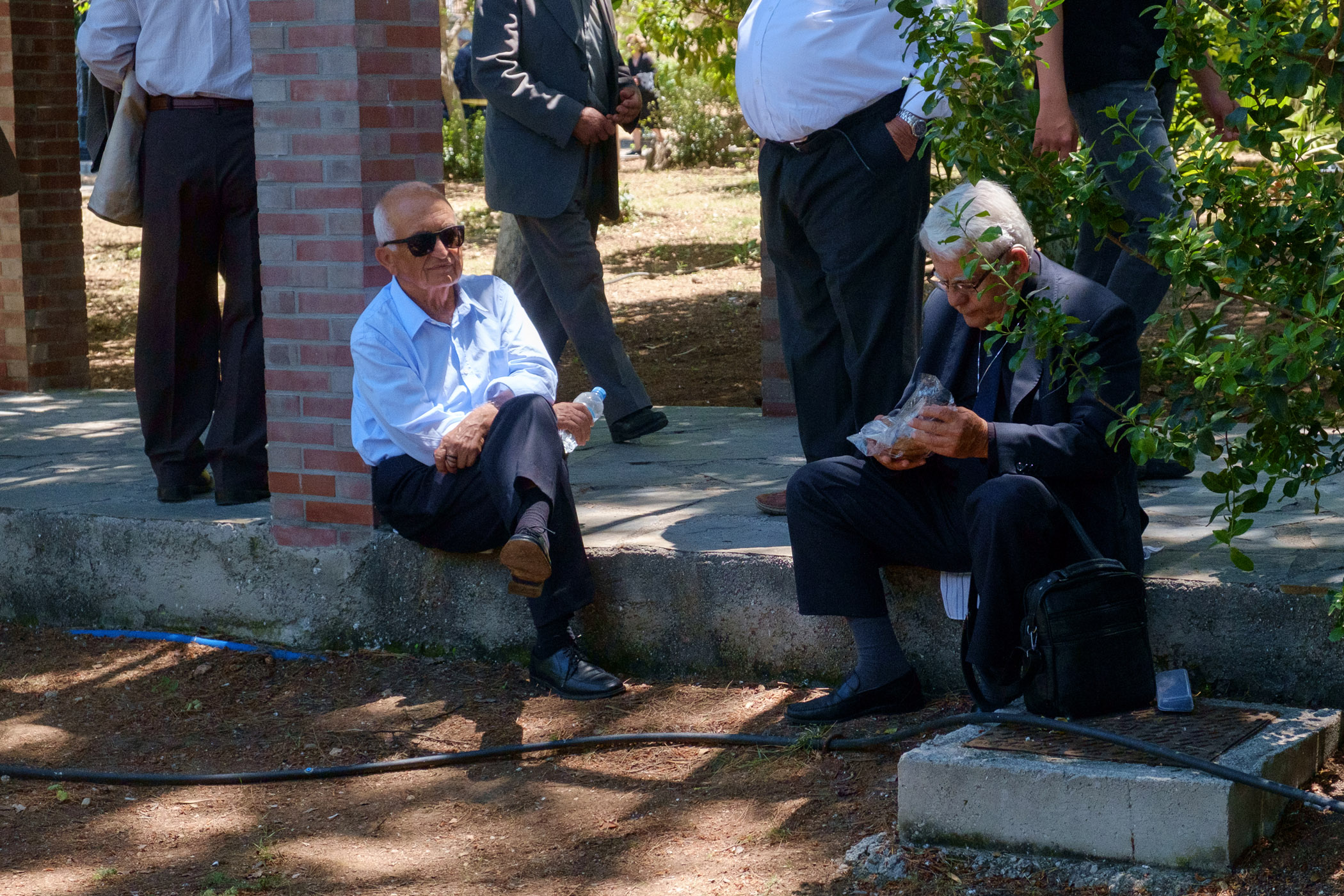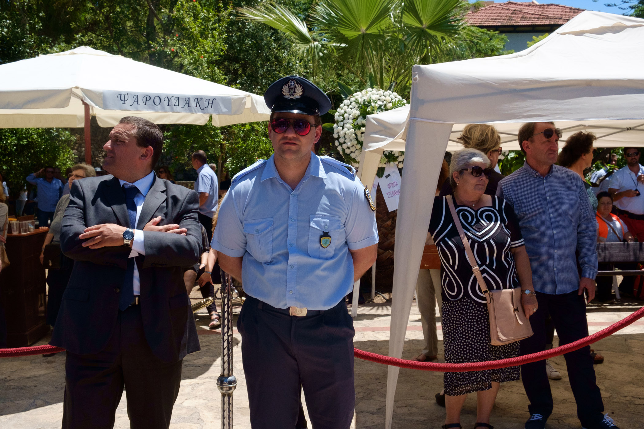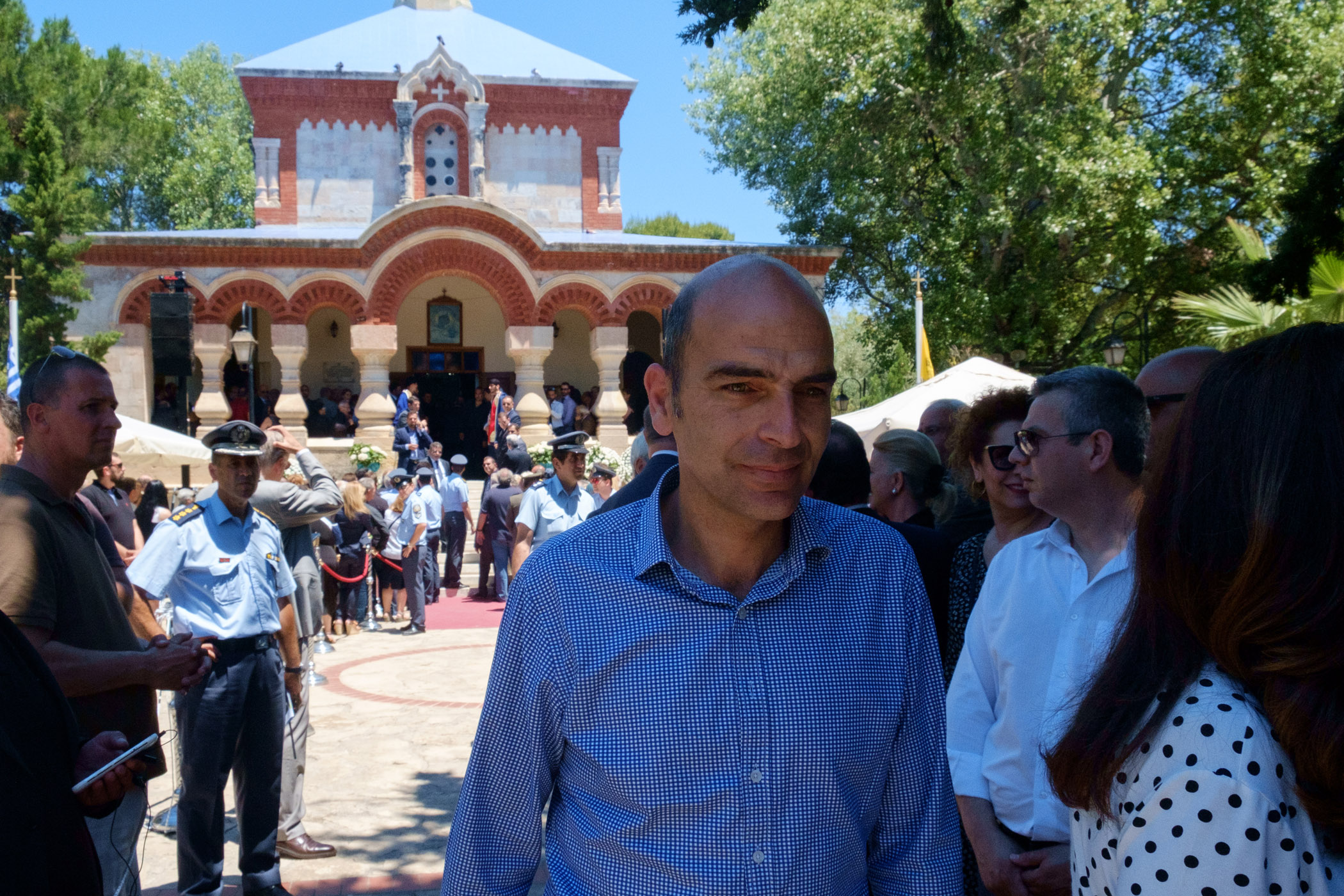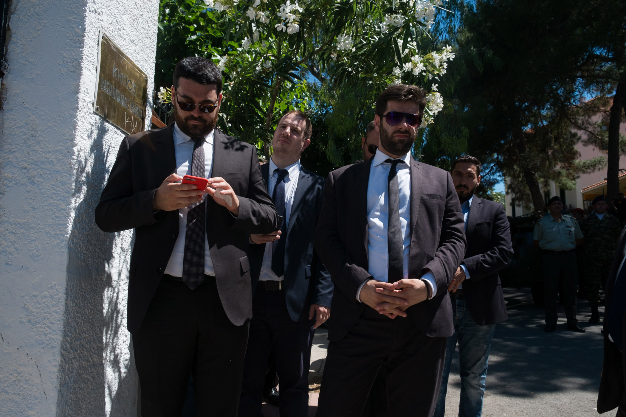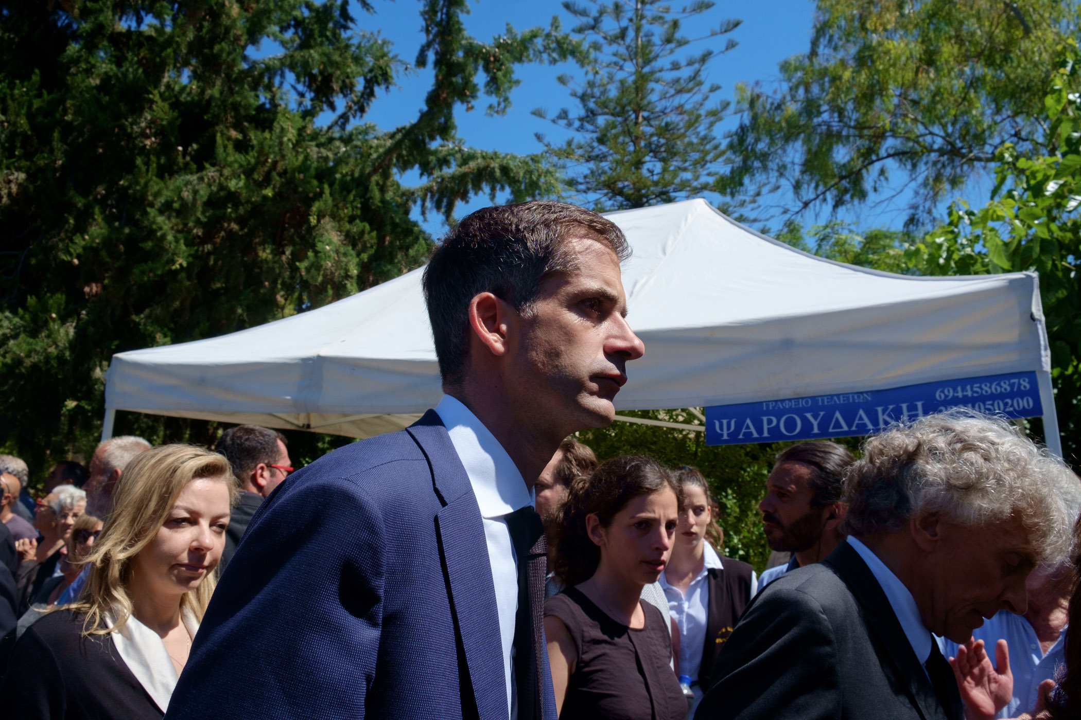 Ο γιος του Κυριάκου Μητσοτάκη εναπόθεσε μία κατσούνα στο φέρετρο ενώ λίγο πριν το τέλος οι παρευρισκόμενοι τραγούδησαν τον εθνικό ύμνο και φώναξαν δυνατά «Αθάνατος».