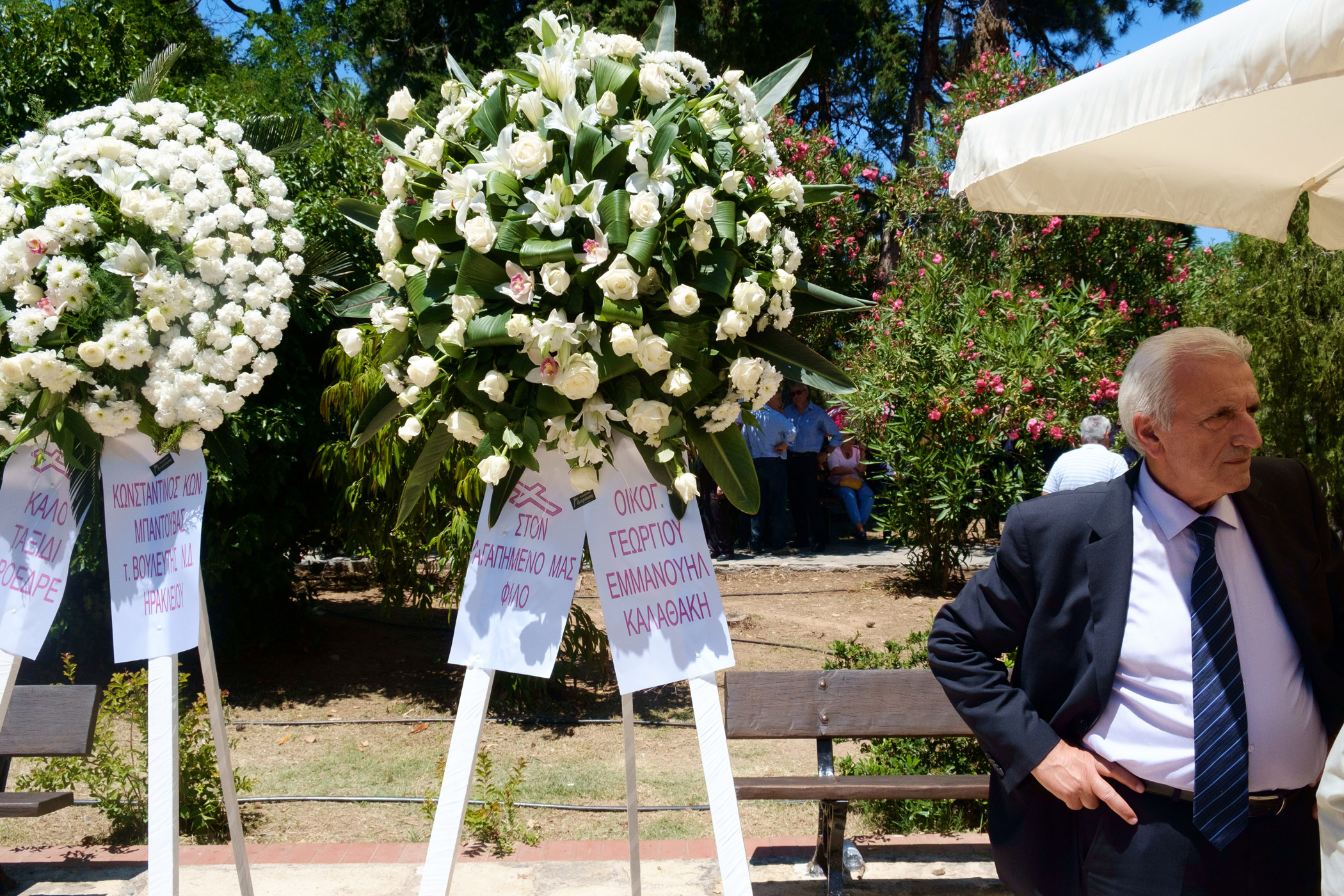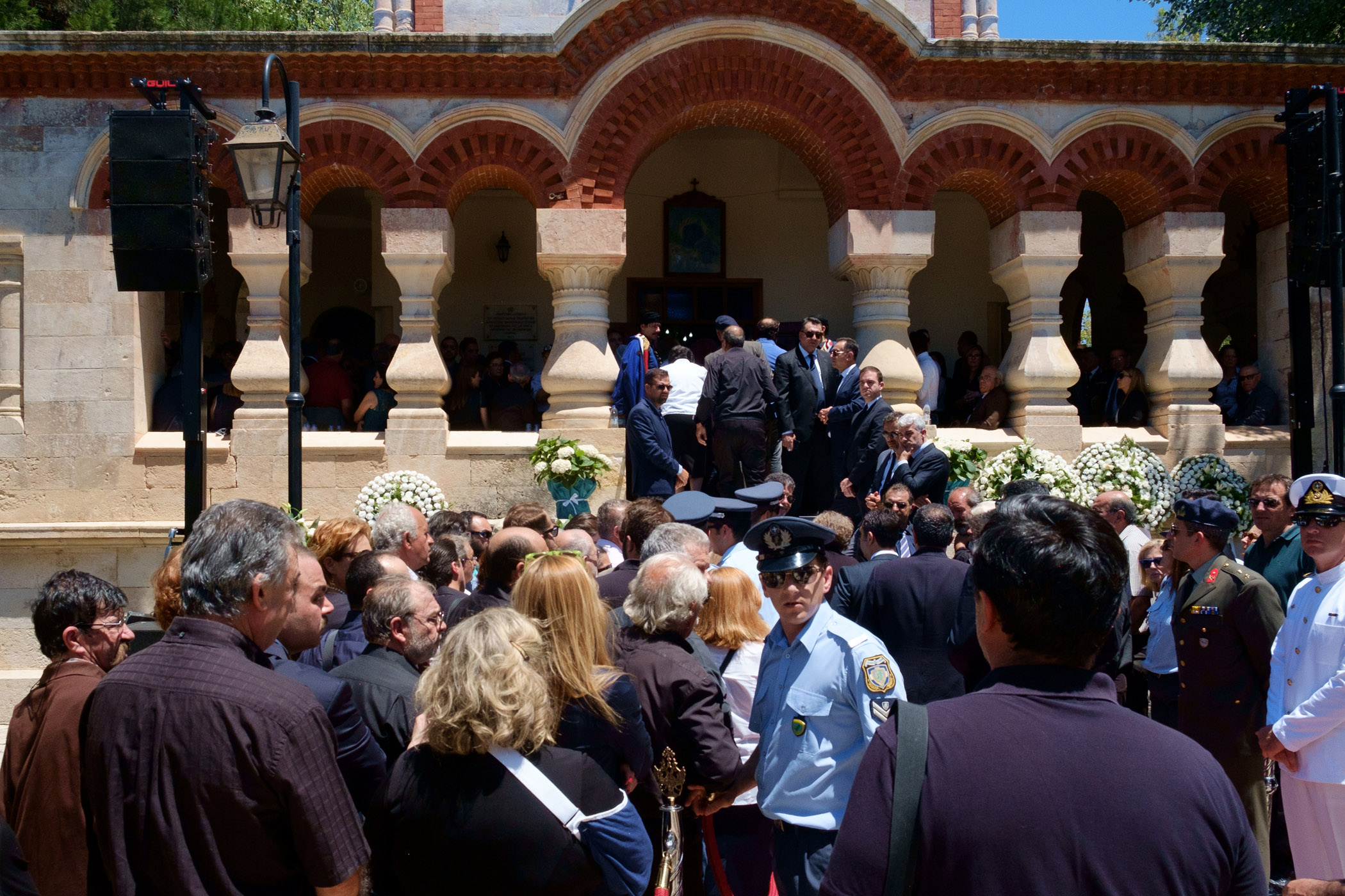 Κρητικοί ριζίτες τραγούδησαν πάνω από το φέρετρο το ριζίτικο «σε ψηλό βουνό» ενώ μετά, οι κρητικοί καλλιτέχνες Μανώλης Κονταρός και Νίκος Ζωιδάκης απήγγειλαν μαντινάδες προς τιμή του νεκρού.