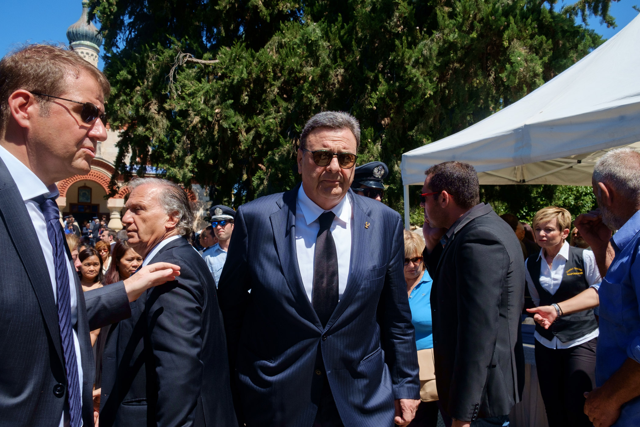 Λίγο πριν τις 4, οι επίσημοι αλλά και οι συγγενείς ξεκίνησαν από τον Ιερό Ναό Αγίας Μαγδαληνής με προορισμό την τελευταία κατοικία του πρώην πρωθυπουργού, δίπλα στη γυναίκα του Μαρίκα, στο κοιμητήριο του Αργουλιδέ.
