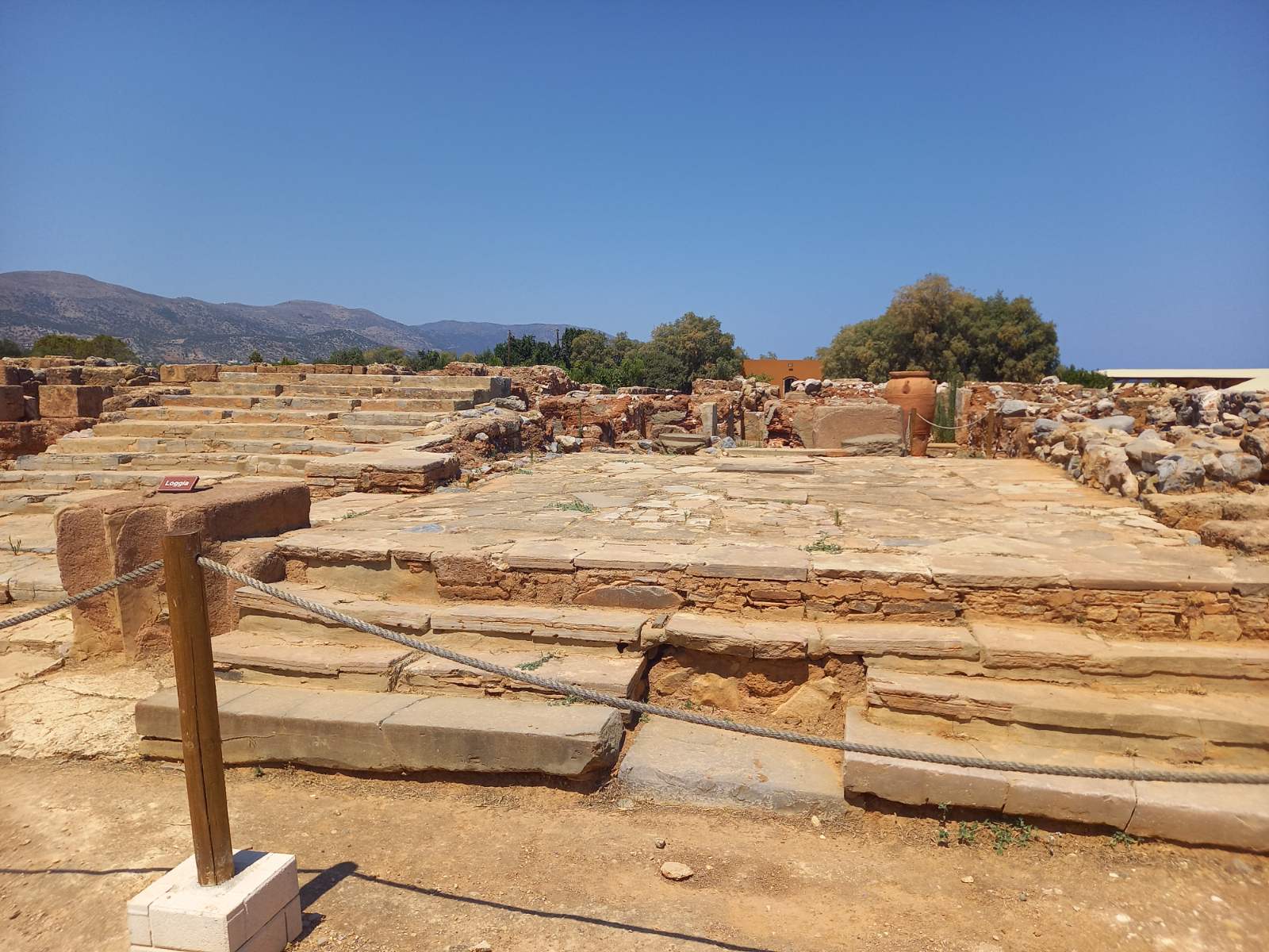 Μετά το μεσημεριανό γεύμα σε τοπική ταβέρνα, η αποστολή ανηφόρισε στην αρχαία Λύττο, μια πόλη-κλειδί στην ιστορία της Κρήτης. Την πόλη είχε παρουσιάσει το 2024, σε διάλεξη της ΙΛΑΕΚ στα Χανιά, ο καθηγητής Άγγελος Χανιώτης, συνδιευθυντής των ανασκαφών μαζί με τον καθηγητή Αντώνη Κοτσώνα και τη Δρ Βάσω Συθιακάκη. Η Λύττος, που ελέγχει στρατηγικά τη δίοδο από την πεδιάδα του Ηρακλείου προς τα Λασιθιώτικα όρη, είχε ως επίνειο τη σημερινή Χερσόνησο.