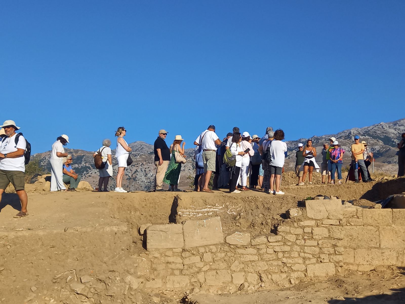 Η ξενάγηση έγινε από την ενθουσιώδη αρχαιολόγο Δρα Σαμάνθα Ξημέρη, συνεργάτιδα του καθηγητή Κοτσώνα, η οποία παρουσίασε λεπτομερώς τα κατά χώραν ευρήματα και τα διαφορετικά επίπεδα της ανασκαφής. Ανάμεσα στα ευρήματα περιλαμβάνονται δημόσια οικοδομήματα, επιτύμβια μνημεία, βυζαντινός ναός και πλήθος επιγραφών και κινητών αντικειμένων που εμπλουτίζουν την κατανόησή μας για το παρελθόν της πόλης.