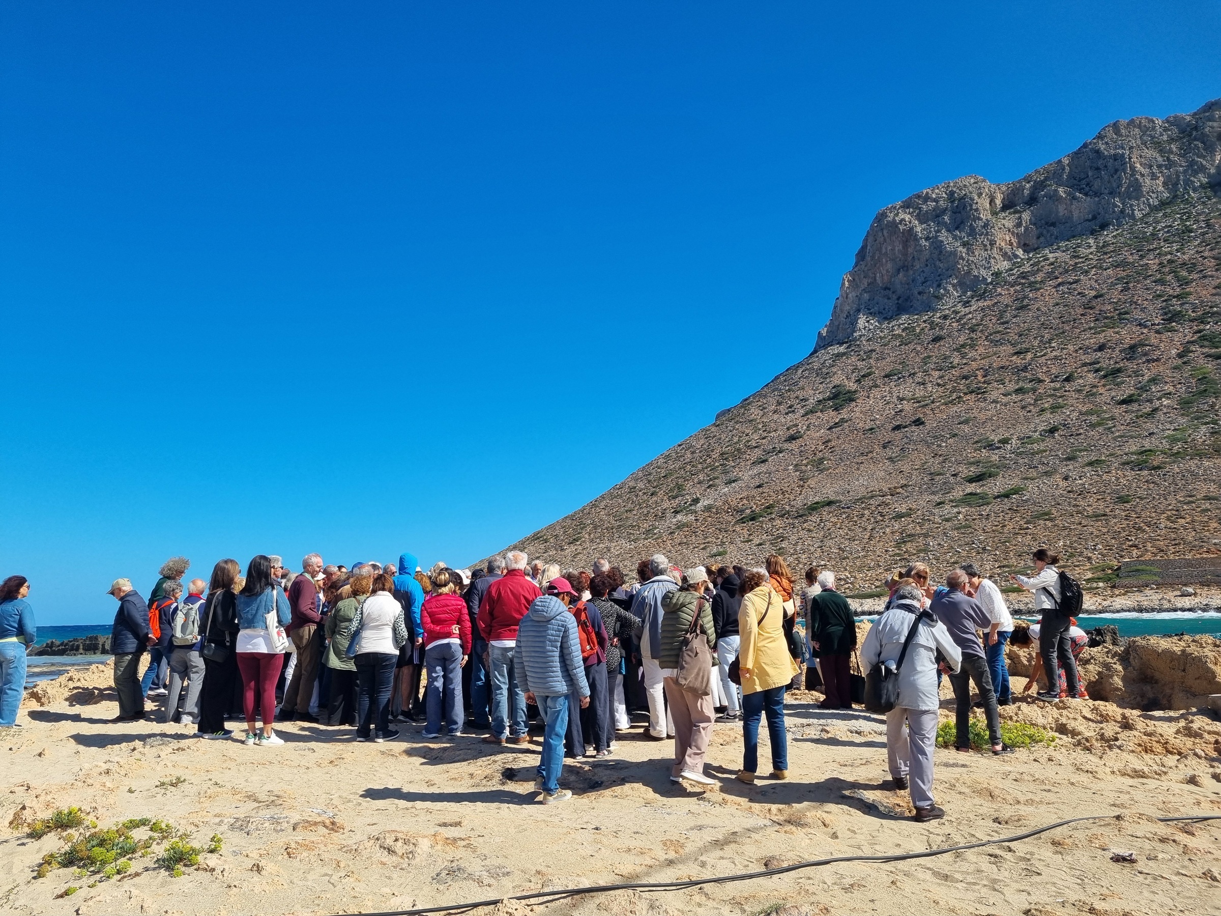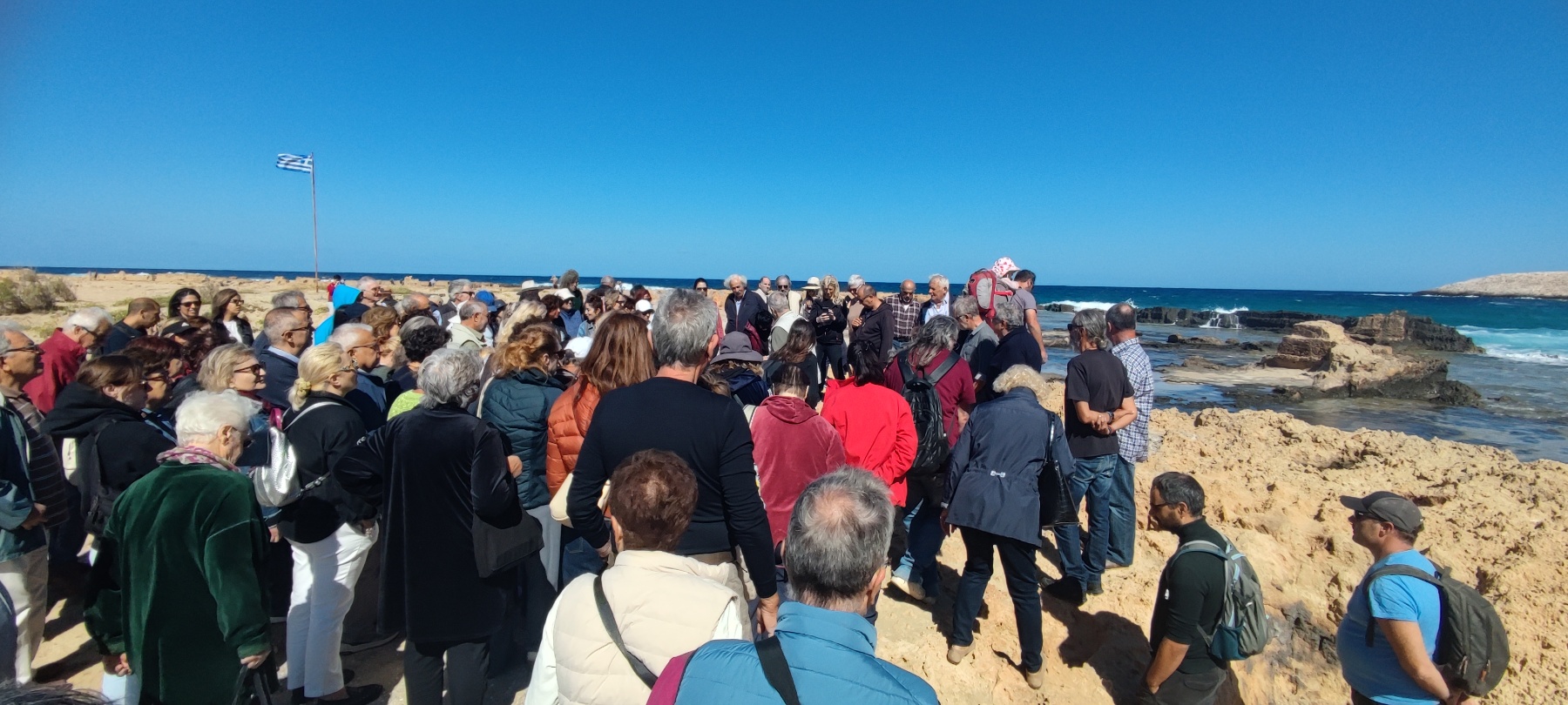 Την Κυριακή 12 Οκτωβρίου τα μέλη και οι φίλοι της Ιστορικής, Λαογραφικής και Αρχαιολογικής Εταιρείας Κρήτης πραγματοποίησαν μία από τις ωραιότερες εξορμήσεις στην ύπαιθρο των Χανίων. Το πρόγραμμα περιοριζόταν στην περιοχή του Σταυρού Ακρωτηρίου, ενός τόπου κοντινού και γνώριμου στους Χανιώτες, αλλά ίσως γι’ αυτό τόσο πολύ προσφιλούς, ώστε να συγκεντρώσει μεγάλο πλήθος κόσμου, κυριολεκτικά διψασμένου να ρουφήξει και την παραμικρή πληροφορία για τη ζωή στο σημείο αυτό του Ακρωτηρίου. Οι πληροφορίες ήταν όντως πολλές, και δόθηκαν από την αρχαιολόγο και πρόεδρο της ΙΛΑΕΚ κ. Μαρία Βλαζάκη και τον γεωλόγο και καθηγητή του Πολυτεχνείου Κρήτης κ. Μ. Μανούτσογλου, και συμπληρώθηκαν από τους παρευρισκομένους.