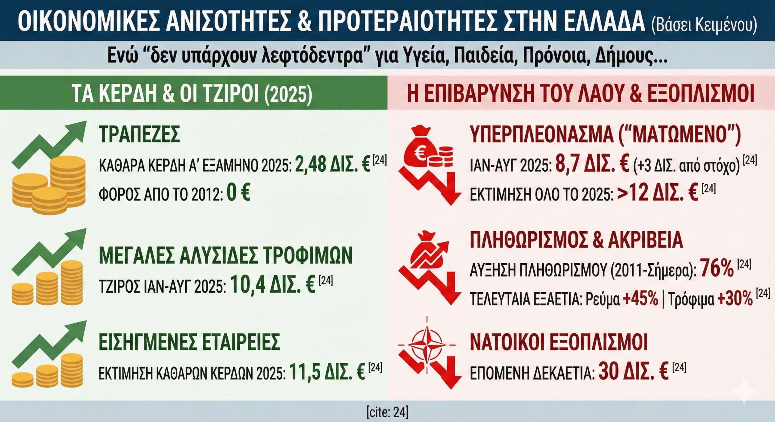 • – 2,48 δισ. ευρώ είναι τα καθαρά κέρδη των τραπεζών στο α’ εξάμηνο του 2025 οι οποίες από το 2012 δεν πληρώνουν ούτε 1 ευρώ φόρο !!!.
