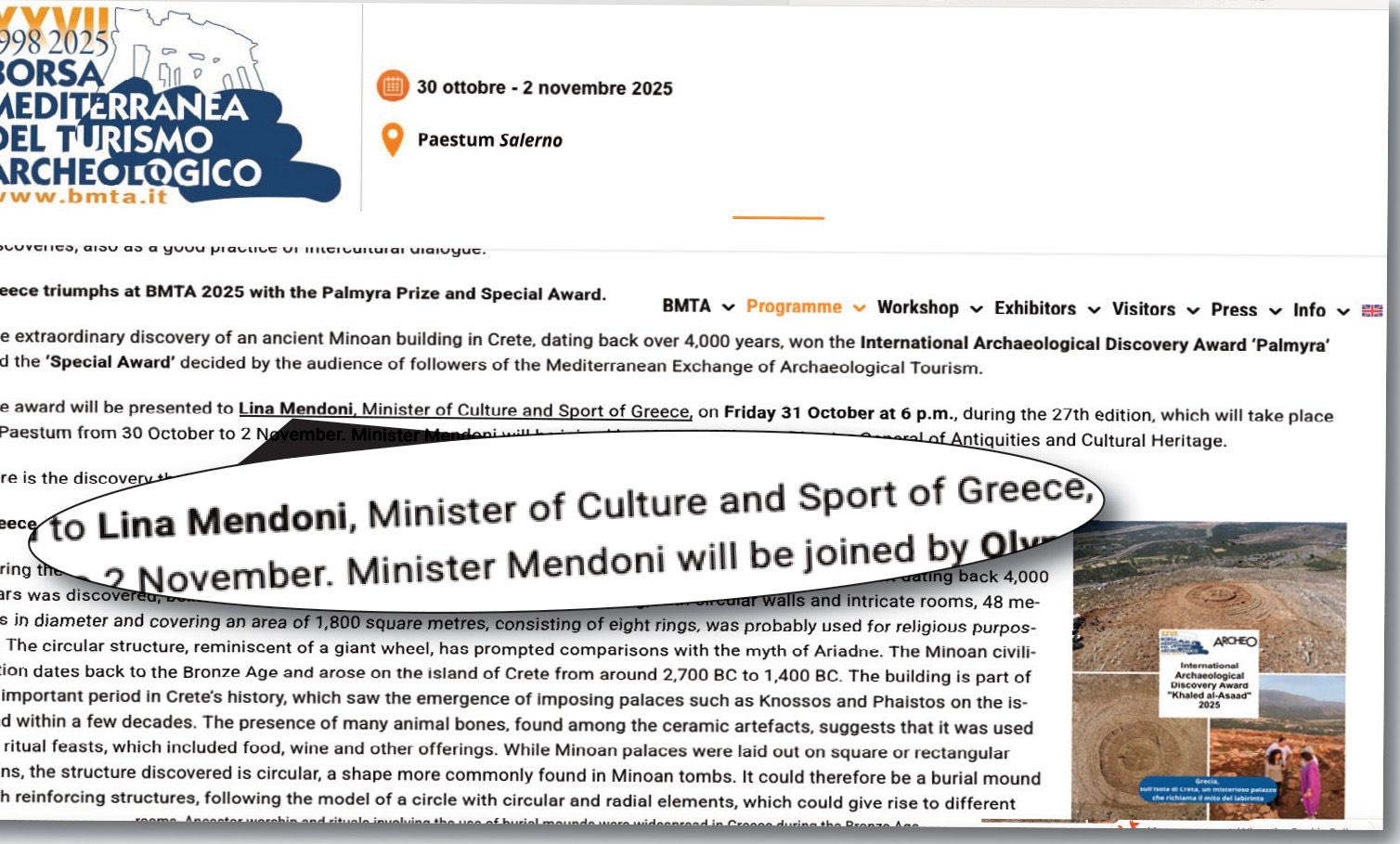 Σε σχετική ανακοίνωση τονίζεται χαρακτηριστικά: «Η Ελλάδα θριαμβεύει στο BMTA 2025, με την κατάκτηση του Βραβείου «Παλμύρα» και του «Ειδικού Βραβείου».
