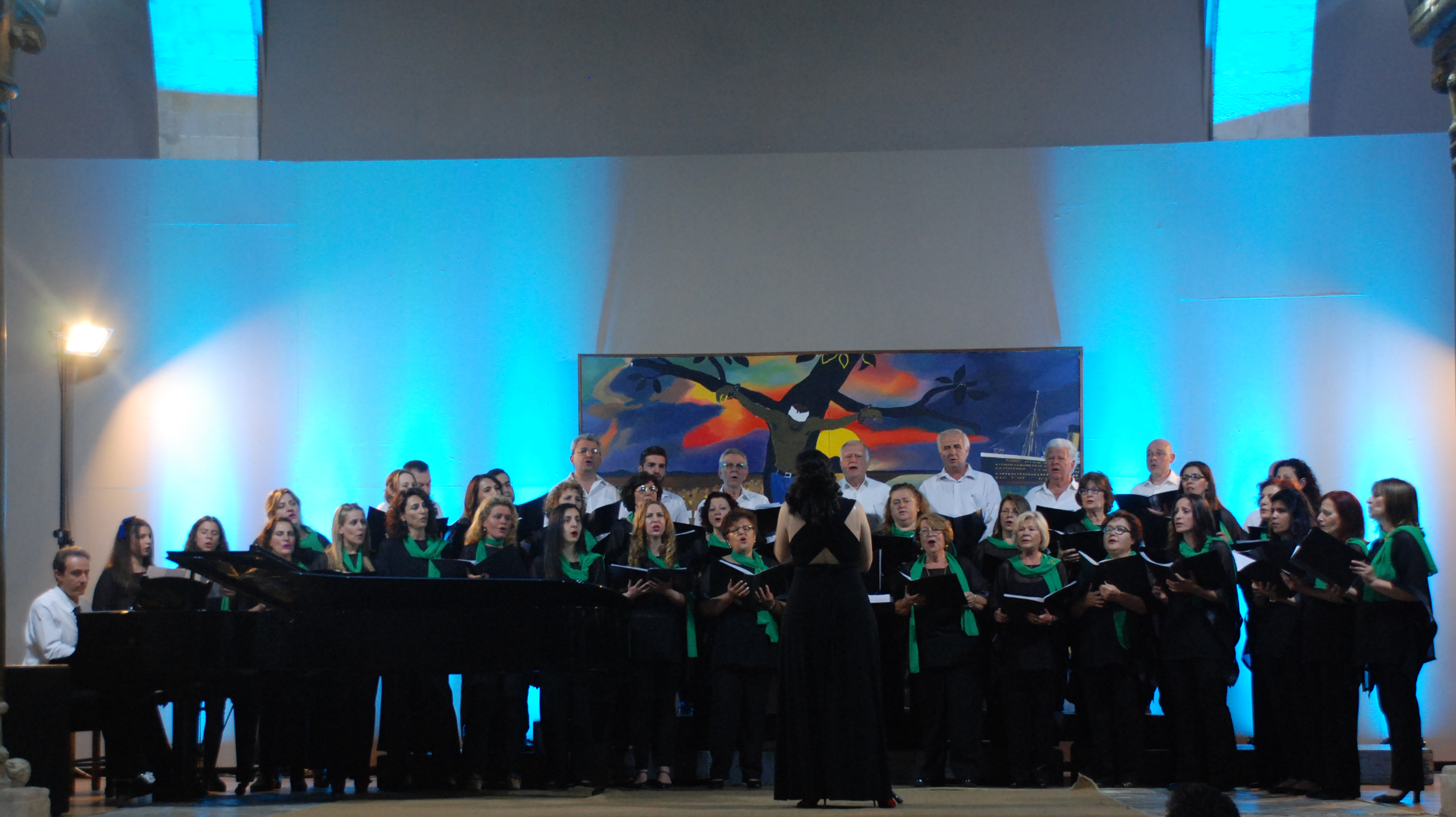 Την χορωδία συνοδεύει στο πιάνο ο Νίκος Βλαζάκης