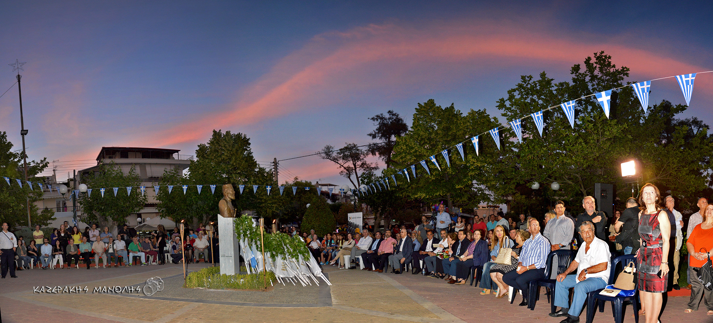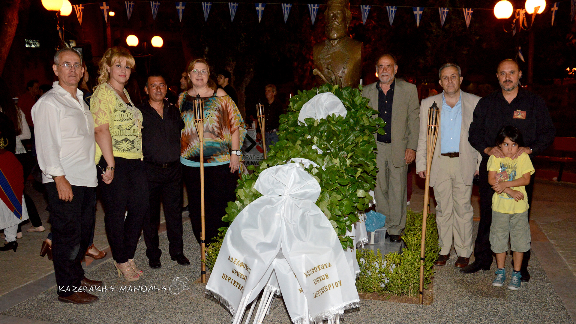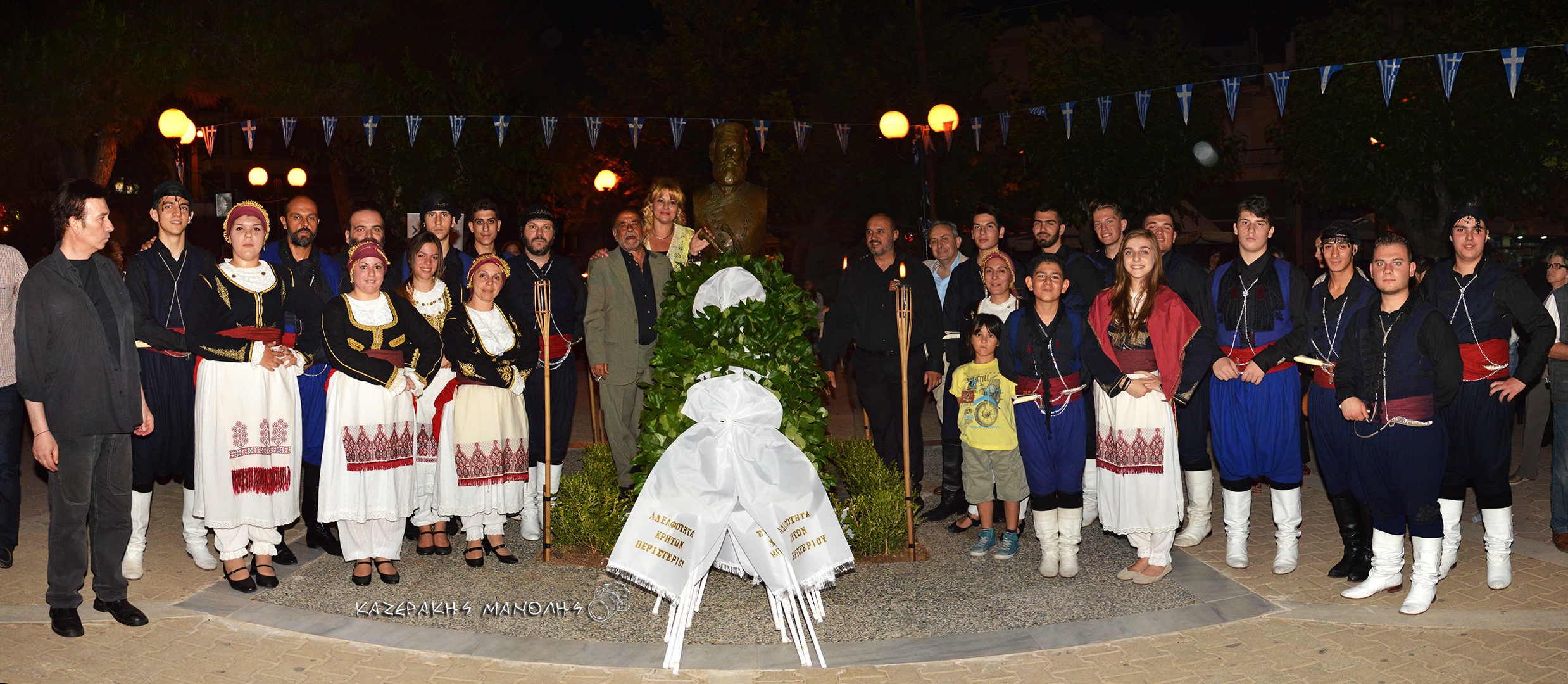 Πλήθος κόσμου στην εκδήλωση των αποκαλυπτηρίων της προτομής (έργο του καθηγητή – γλύπτη  Γεωργιλάκη), που έγινε πραγματικότητα, με τις προσπάθειες του Συλλόγου Κρητών Περιστερίου, του Δήμου Περιστερίου και ιδιαίτερα της Συνεταιριστικής Τράπεζας Χανίων, όπως χαρακτηριστικά τονίσθηκε από τον Δήμαρχο Περιστερίου Ανδρέα Παχατουρίδη.