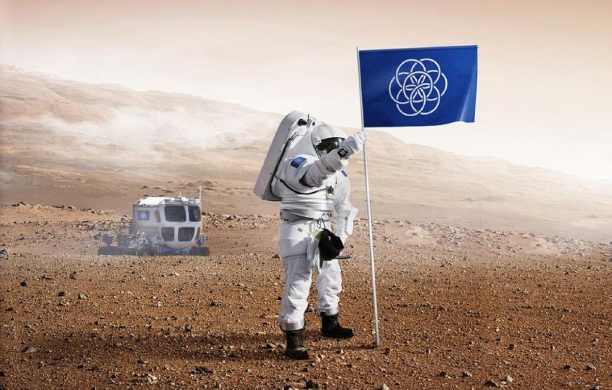 Ο Σουηδός σχεδιαστής Oskar Pernefeldt επιμελήθηκε τη σημαία που θα εκπροσωπεί τον πλανήτη Γη όταν τα πολύ μακρινά μας δισέγγονα θα έχουν φτάσει σε μακρινούς πλανήτες και γαλαξίες, εκεί που ακόμα δεν έχει πατήσει το ανθρώπινο γένος.