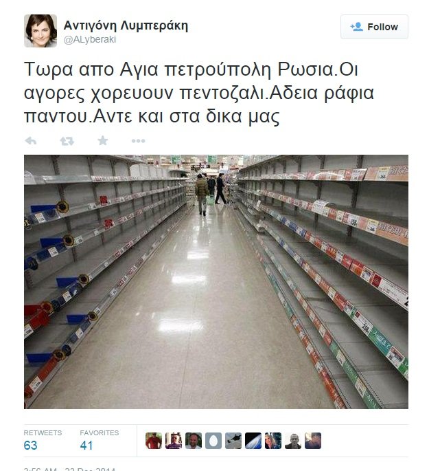 Συγγνώμη σύντροφοι για τα άδεια ράφια. Το ορθό είναι ότι στη Μόσχα πανηγυρίζει ο λαός για την υποτίμηση.