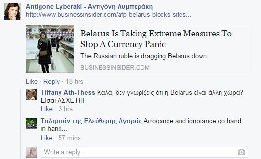 Η απάντηση χρήστη αποστομωτική: Μα καλά, δε γνωρίζεις ότι η Λευκορωσία είναι άλλη χώρα;
