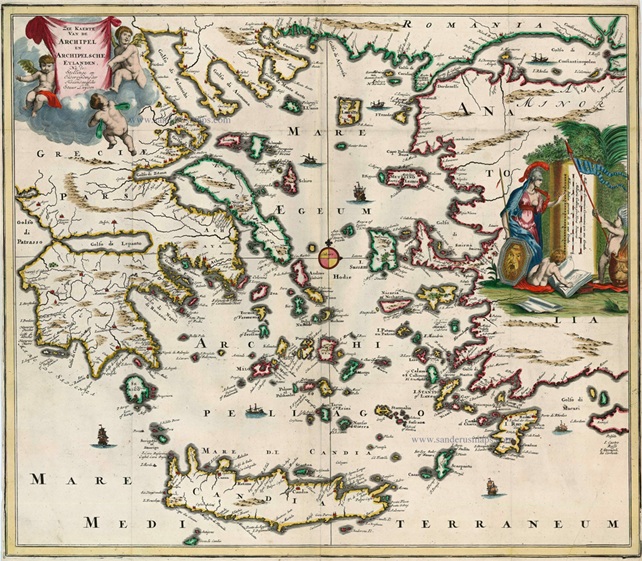 Antique map of Greece – Aegean Sea by Dapper O. 1688, Πηγή: sanderusmaps.com,
