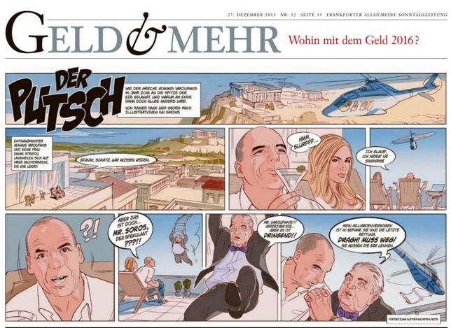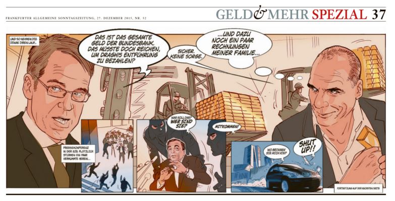 Η FAZ έκανε τον Bαρουφάκη σε κόμικ επικεφαλή της ΕΚΤ και τον τραπεζίτη Ντράγκι υπερασπιστή των φτωχών!