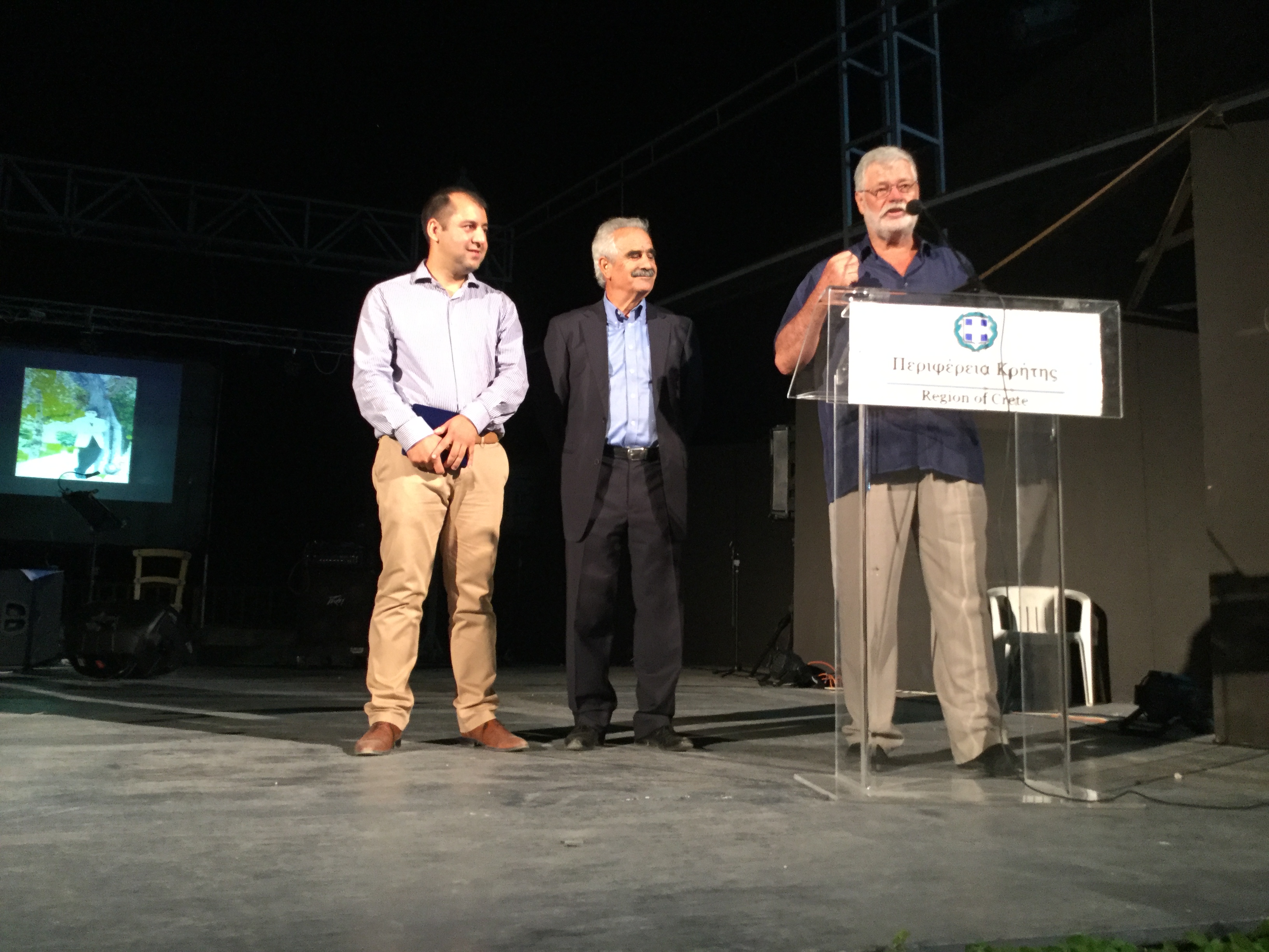 Μάλιστα σε γιγαντοοθόνη έγινε προβολή video αφιέρωμα στο Μάνο Ελευθερίου και θα του σταλεί τιμητική πλακέτα της Περιφέρειας για την προσφορά και το έργο του στον πολιτισμό. Ο Μάνος Ελευθερίου που θα ήθελε πολύ να είναι παρόν στη συναυλία, για λόγους ανειλημμένους δεν κατέστει δυνατόν να είναι παρόν και διαβάστηκε σύντομος θερμός χαιρετισμός του προς τους Κρητικούς εκφράζοντας τις ευχαριστίες του στη Περιφέρεια και τους καλλιτέχνες για την συναυλία αφιέρωμα στο πρόσωπο του. Επίσης ο Αντιπεριφερειάρχης Ευριπίδης Κουκιαδάκης απένειμε πλακέτα στον Κρητικό καλλιτέχνη Μπάμπη Γαργανουράκη για τη συνεργασία του με τον Μάνο Ελευθερίου.