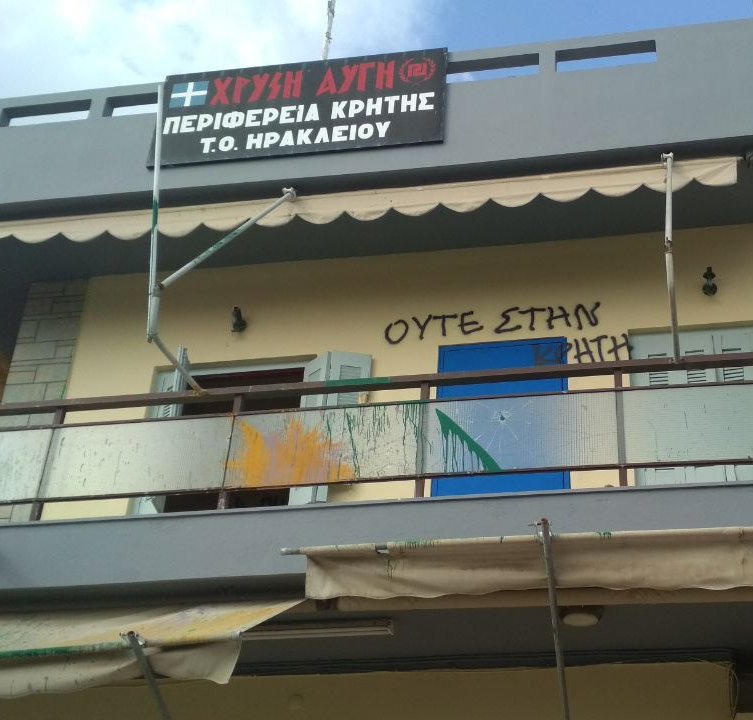 “Ισοπεδώθηκαν” τα γραφεία της Χρυσής Αυγής στο Ηράκλειο – Xρυσή Αυγή: “Δε χαμπαριάζουμε. Η εκδήλωση θα γίνει κανονικά”