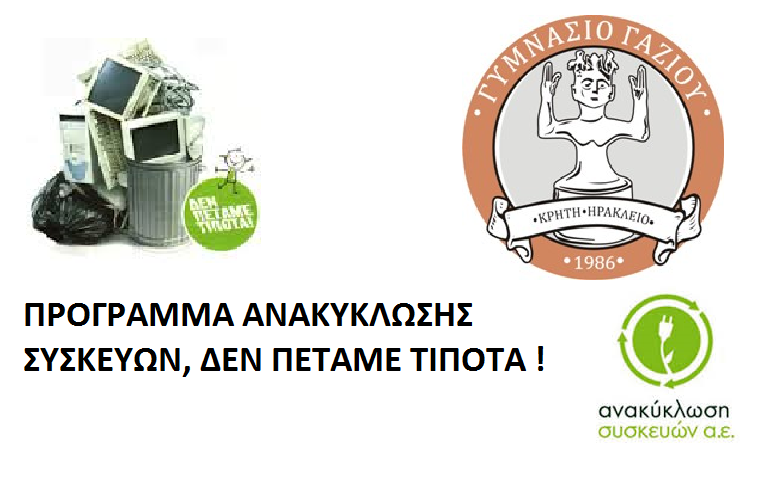 «Κάνουμε την προστασία του περιβάλλοντος τρόπο ζωής! Κάνουμε την ανακύκλωση τρόπο ζωής! Στην αλυσίδα της ανακύκλωσης ο καθένας μας παίζει σημαντικό ρόλο. Ανακυκλώνοντας σεβόμαστε το περιβάλλον, τον εαυτό μας και τους συνανθρώπους μας! Αν δεν ανακυκλώνουμε τις παλιές μας συσκευές, επιβαρύνουμε το περιβάλλον με επικίνδυνες ουσίες που περιέχονται σε αυτές, ενώ ταυτόχρονα αυξάνουμε και τον όγκο των απορριμμάτων. Το περιβάλλον δεν το κληρονομήσαμε από τους προηγούμενους αλλά το δανειστήκαμε από τους επόμενους, δηλαδή τα παιδιά μας. Ας γίνουμε όλοι μας ο πρώτος κρίκος στην αλυσίδα, ανακυκλώνοντας τις παλιές ηλεκτρικές συσκευές, μπαταρίες, πλαστικά, λαμπτήρες» δήλωσε ο πρόεδρος του συλλόγου γονέων Δημοσθένης Μαράκης. Ενημερωτικά, το Γυμνάσιο Γαζίου εκτός από στήλη ανακύκλωσης μπαταριών, διαθέτει κάδο και λειτουργεί ως σημείο ανακύκλωσης μικροσυσκευών και λαμπτήρων, συμμετέχει δε και στο πρόγραμμα συλλογής και ανακύκλωσης πλαστικών καπακιών για λογαριασμό του συλλόγου «Δικαίωμα στη Ζωή». Με απόφαση του συλλόγου γονέων το συμβολικό ποσό που αποζημιώθηκαν οι συσκευές, θα διατεθεί ως δωρεά στον σύλλογο «Δικαίωμα στη Ζωή».