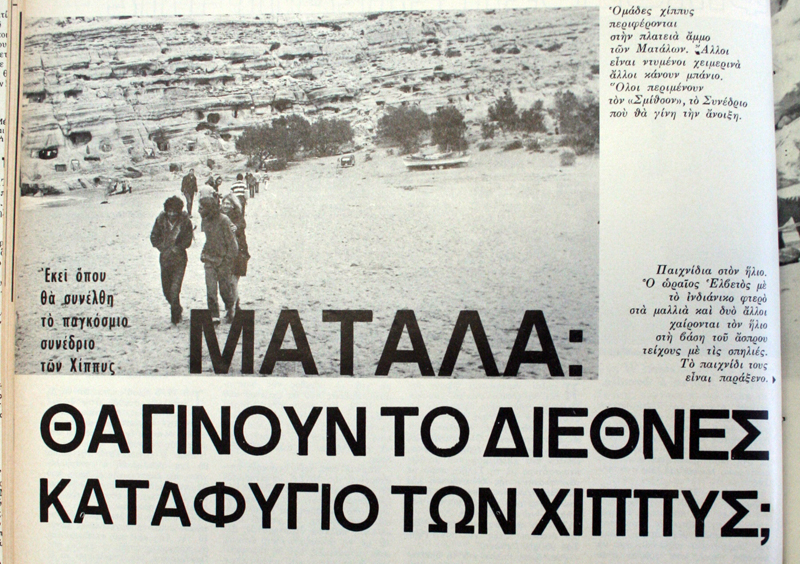 «ένα μεγάλο Συνέδριο Χίπις από όλο τον κόσμο οργανώνεται στα Μάταλα. Οι χίπις θα συγκεντρωθούν εκεί την Άνοιξη, για να ξεκαθαρίσουν τα εσωτερικά τους προβλήματα…» (ΕΠΙΚΑΙΡΑ,13 Φεβρ 1970) Ο ίδιος δημοσιεύει την ίδια είδηση στην εφημερίδα ΠΑΤΡΙΣ (14 Φεβρ 1970).