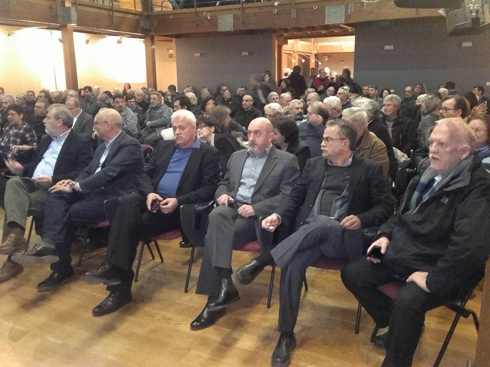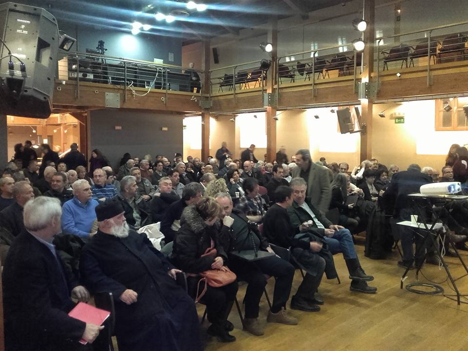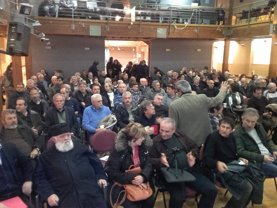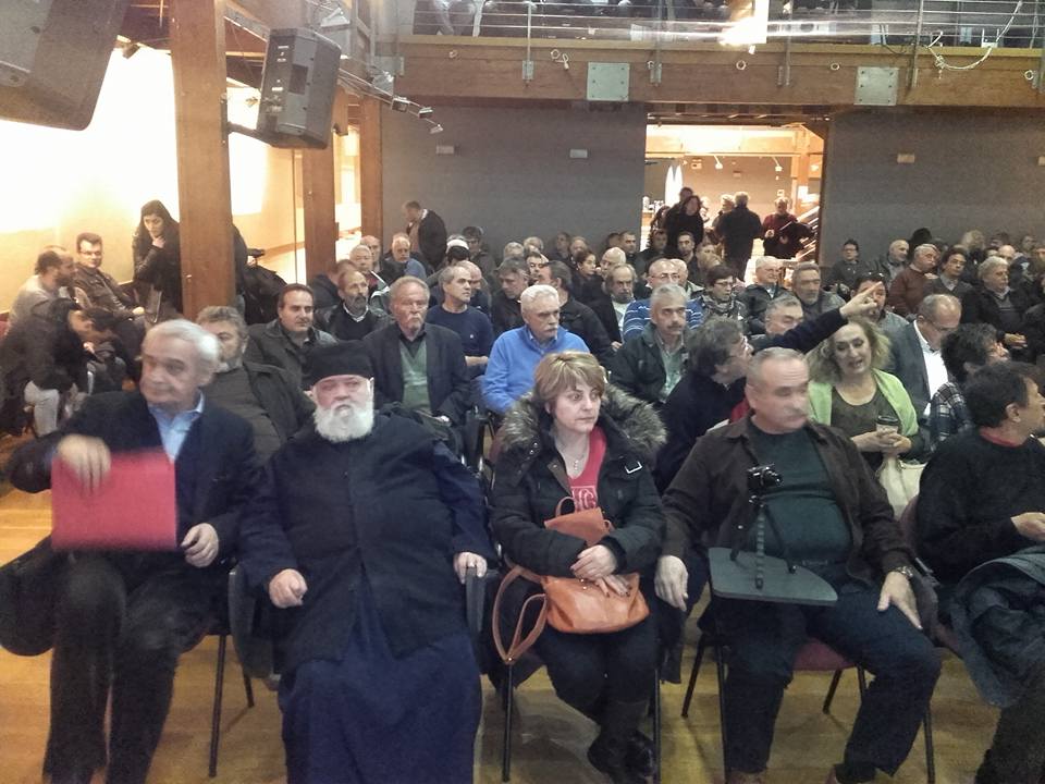 Η αίθουσα του ΚΑΜ αποδείχτηκε μικρή για να χωρέσει τον αριθμό των πολιτών που βρέθηκαν εκεί στις 7.30 το απόγευμα για να παρακολουθήσουν την εκδήλωση της Ανοικτής Πρωτοβουλίας Πολιτών ενάντια στην εκποίηση του Αεροδρομίου “Δασκαλογιάννης”. Κεντρικοί ομιλητές στην εκδήλωση ήταν οι ευρωβουλευτές Νότης Μαριάς, Νίκος Χουντής και Σοφία Σακοράφα οι οποίοι νωρίτερα έδωσαν αναλυτική συνέντευξη στα τοπικά ΜΜΕ.