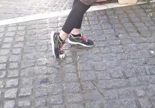 Στην παγίδα αυτή -σιδερένια προεξοχή-λοιπόν σκόνταψα και έπεσα στο πλακόστρωτο πεζοδρόμιο με φόρα. Προφανώς δεν χρειάζεται να αναφερθώ στον ανύπαρκτο δημοτικό φωτισμό της περιοχής .