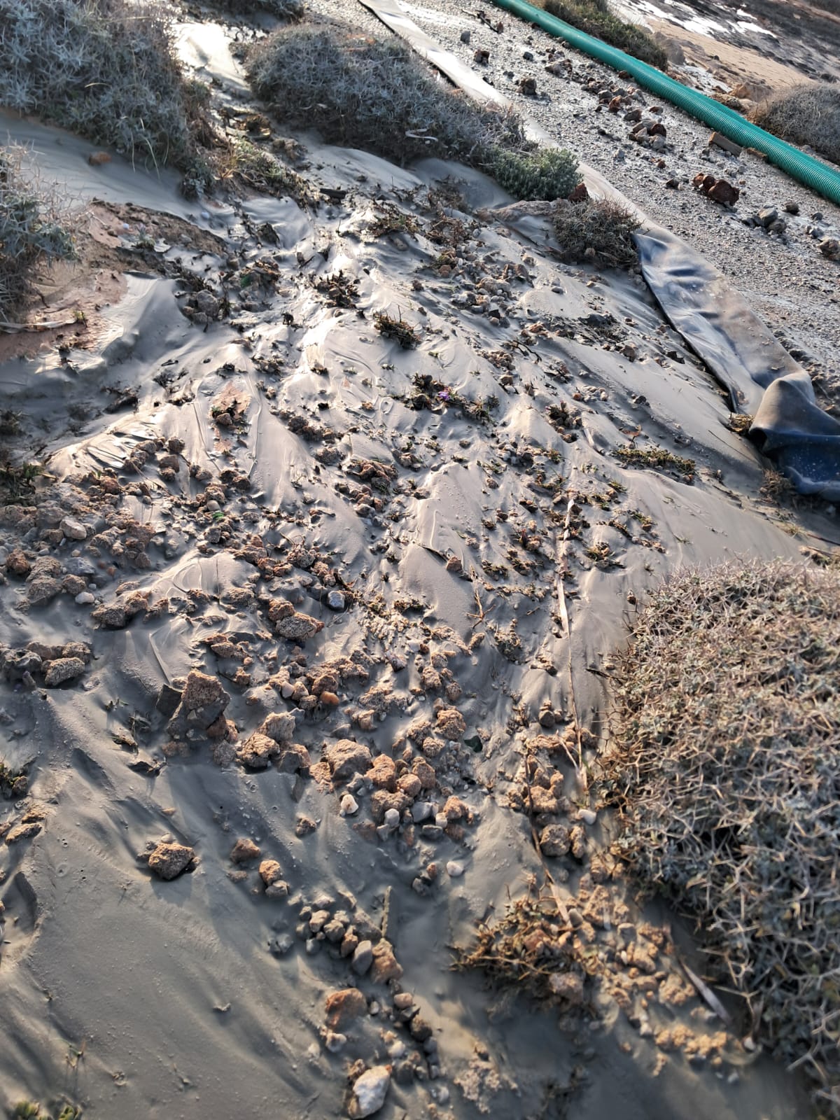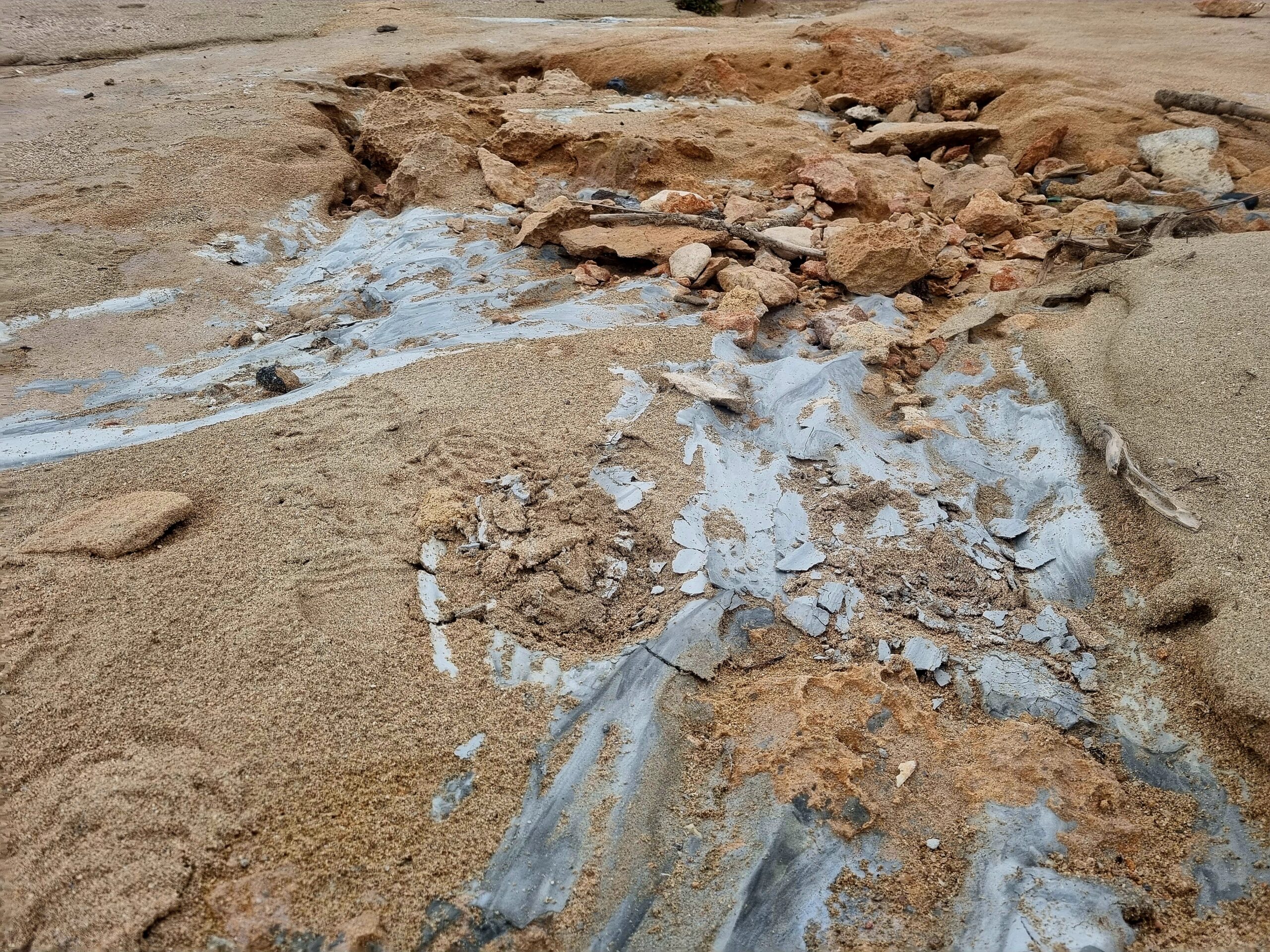 Καταγγελίες για ρίψη εργοταξιακών αποβλήτων με τσιμεντολάσπη στην Παχιά Άμμο και υποβάθμιση προστατευόμενης ακτής λίγο πριν την ωοτοκία της Caretta caretta
