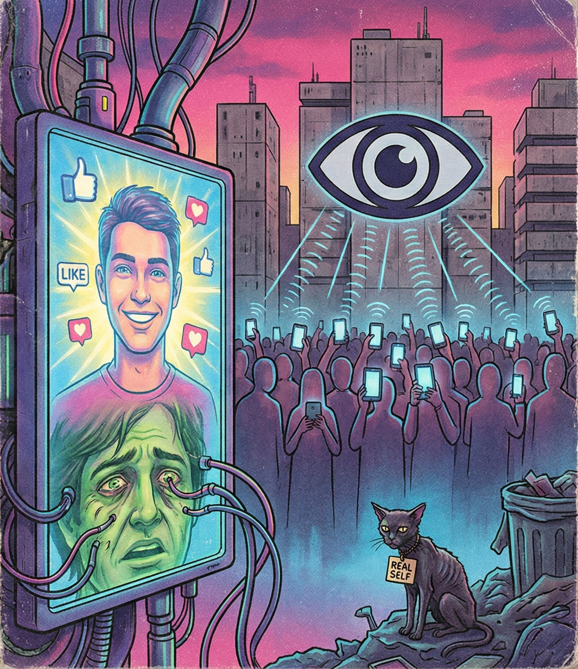 Στα κοινωνικά μέσα σε αντιδιαστολή με τα παραδοσιακά μέσα ενημέρωσης, γινόμαστε το προϊόν το οποίο καλούνται οι άλλοι να καταναλώσουν. Προσαρμοζόμαστε στις ανάγκες ενός διαρκώς μεταλασσόμενου αλγόριθμου που διαχειρίζεται τεράστιες βάσεις δεδομένων με απίστευτη ταχύτητα. Οι ζωές μας μοιάζουν να προσαρμόζονται.