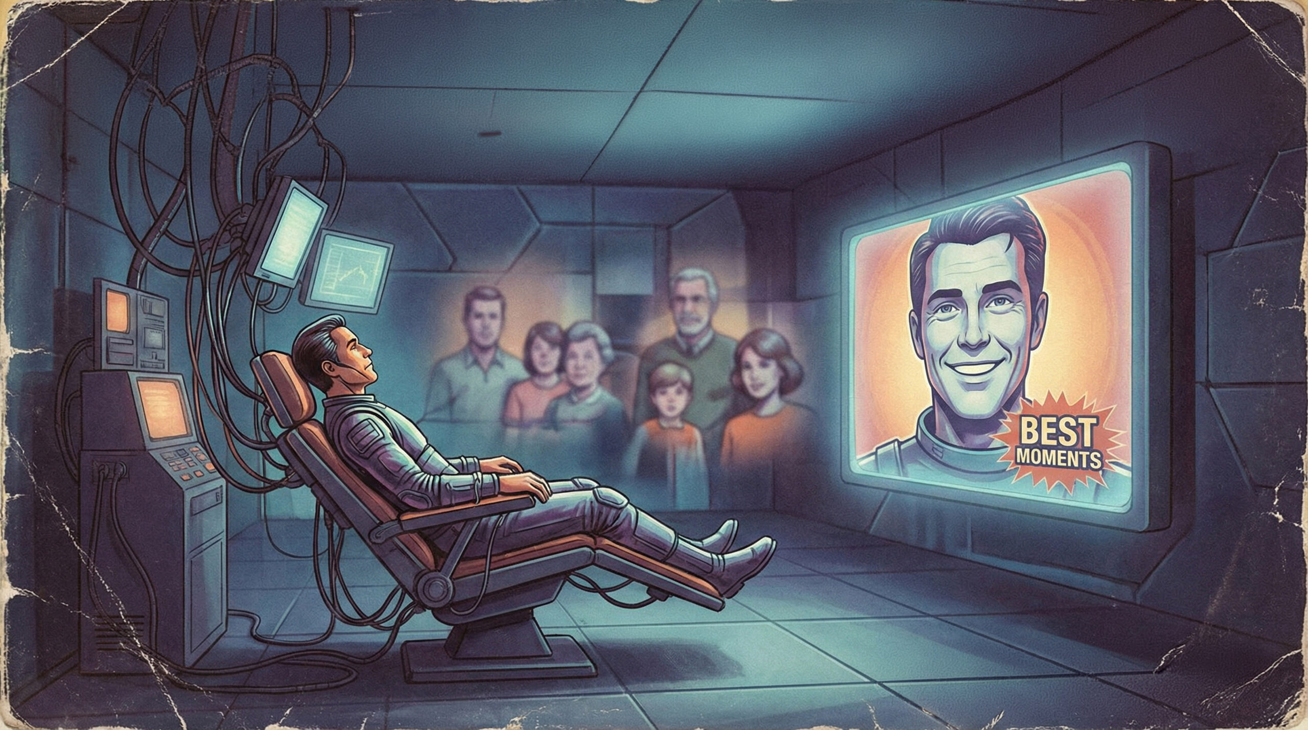 Κάθε μία από τις πράξεις μας κατά τη διάρκεια της ημέρας, σε όλο το φάσμα της οικιακής ζωής μας θα καταγράφεται στιγμιαία … Το βράδυ, θα καθόμαστε και θα σαρώνουμε τα στιγμιότυπα της ζωής μας, τα οποία θα επιλέγονται προσεκτικά από έναν υπολογιστή εκπαιδευμένο ώστε να διαλέγει μόνο τα καλύτερα προφίλ μας, τους πιο πνευματώδεις διαλόγους μας, τις πιο συγκινητικές εκφράσεις μας όπως έχουν καταγραφεί μέσα από τα πιο ευγενικά φίλτρα. Αυτά μετά θα τα συνδέουμε δημιουργώντας μία αναπαράσταση της ημέρας. Ανεξάρτητα από τη θέση μας στην οικογενειακή ιεραρχία, ο καθένας από εμάς μέσα από την ιδιωτικότητα των ολόδικών μας δωματίων θα είναι το αστέρι, ο κεντρικός χαρακτήρας, ο πρωταγωνιστής σε ένα διαρκώς εξελισσόμενο οικογενειακό έπος, με τους γονείς, τους συζύγους, τις γυναίκες και τα παιδιά να υποβιβάζονται αναλόγως σε έναν κατάλληλο δευτερεύοντα ρόλο…