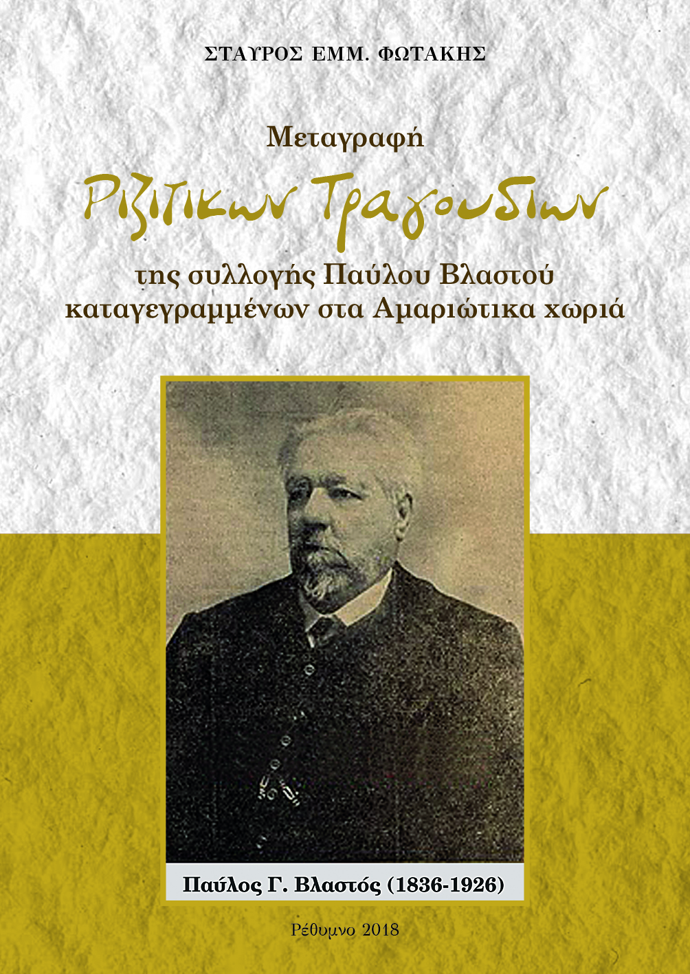 Ένα χρόνο πριν, είχε εκδώσει μια ακόμα σημαντική επιστημονική έρευνα: το βιβλίο «Μεταγραφή Ριζίτικων Τραγουδιών της συλλογής Παύλου Βλαστού, καταγεγραμμένων στα Αμαριώτικα χωριά». Πρόκειται για μια εξειδικευμένη μελέτη που συμπληρώνει και εμβαθύνει στην κατανόηση της τοπικής μουσικοποιητικής παράδοσης.