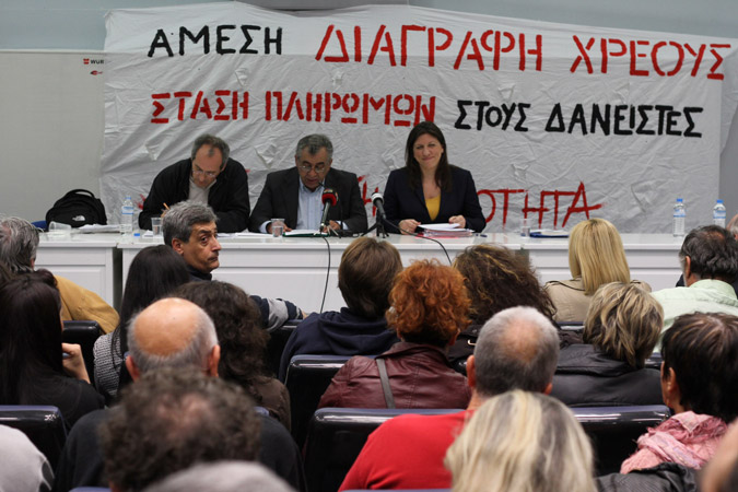 Με βασική ομιλήτρια τη Ζωή Κωνσταντοπούλου και με θέμα «άμεση διαγραφή του χρέους» πραγματοποιήθηκε η πρώτη μαζική εκδήλωση της Λαϊκής Ενότητας μετά τις εκλογές της 20ης Σεπτεμβρίου.