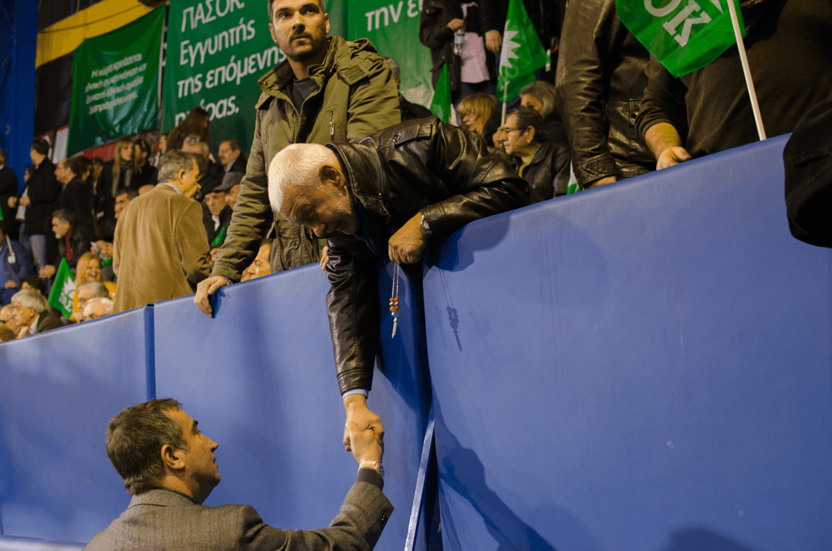 Δέκα λεπτά πριν την ομιλία του Μπένι του αρχηγού του true (metal) ΠΑΣΟΚ και στο γηπεδάκι βρίσκονται ελάχιστοι πωρωμένοι υπέργηροι οπαδοί και άπειρα σημαιάκια που λογικά είχαν ξεμείνει στις αποθήκες του κόμματος από το 2008. Στα ηχεία βαράει το κλασσικό ποτ πουρί: Νταλάρας, Νταλάρας, Σαββόπουλος, Νταλάρας, Αρβανιτάκη και ποτέ-πότε μικρά διαλείμματα για λίγο Νταλάρα.