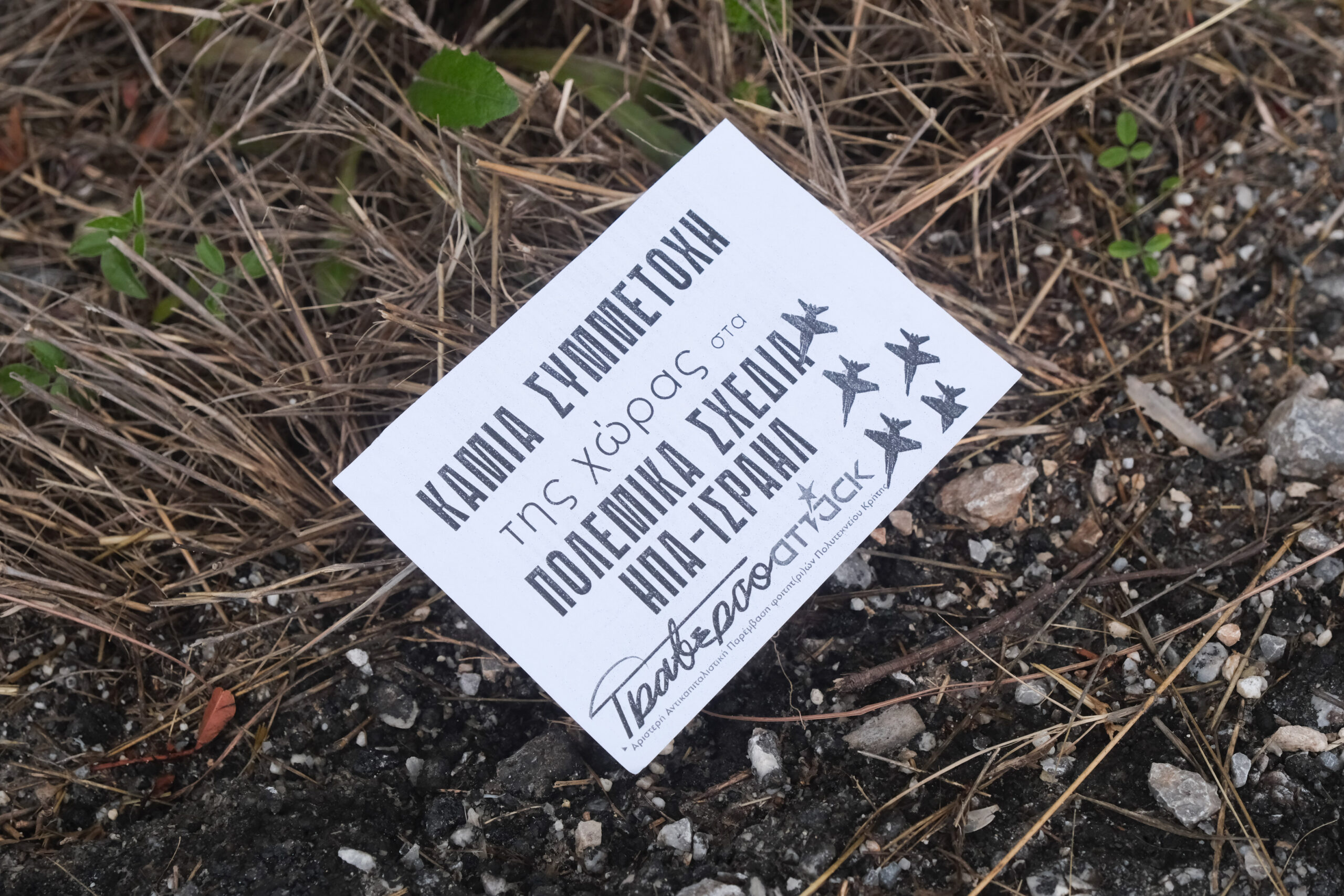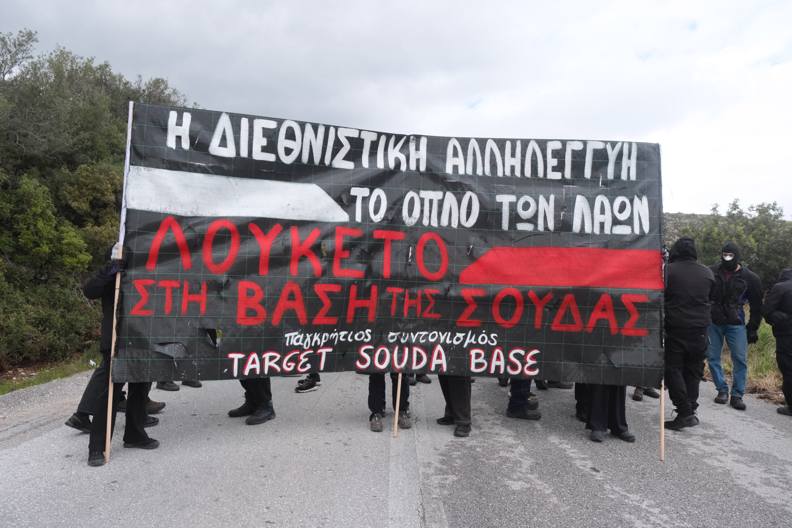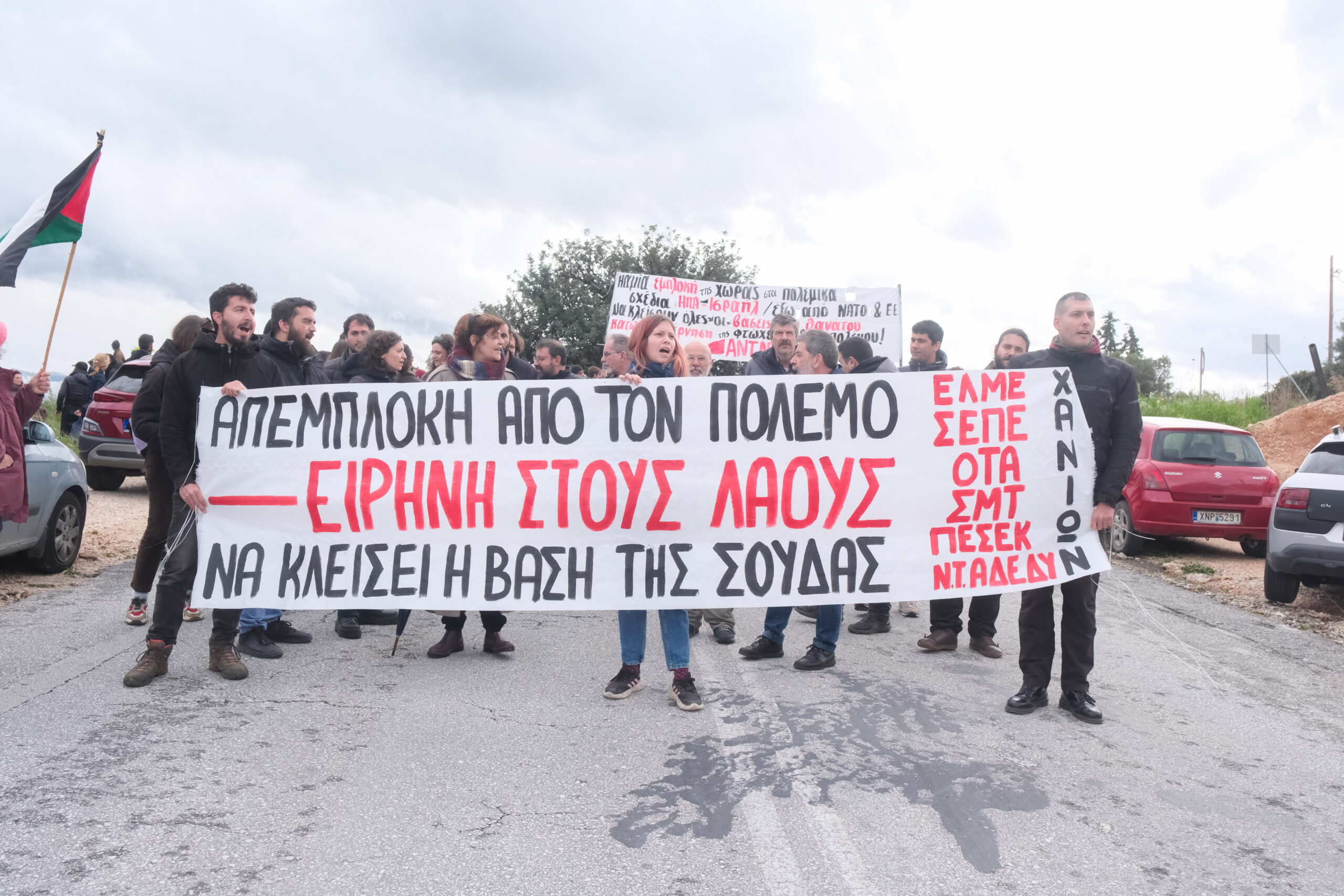 Πραγματοποιήθηκε σήμερα η παγκρήτια κινητοποίηση στα Χανιά ενάντια στον πόλεμο, με κινητοποίηση αρχικά, περίπου στις 1 το μεσημέρι στο λιμάνι της Σούδας και κατόπιν στις 3 περίπου στη βάση στο Μαράθι.