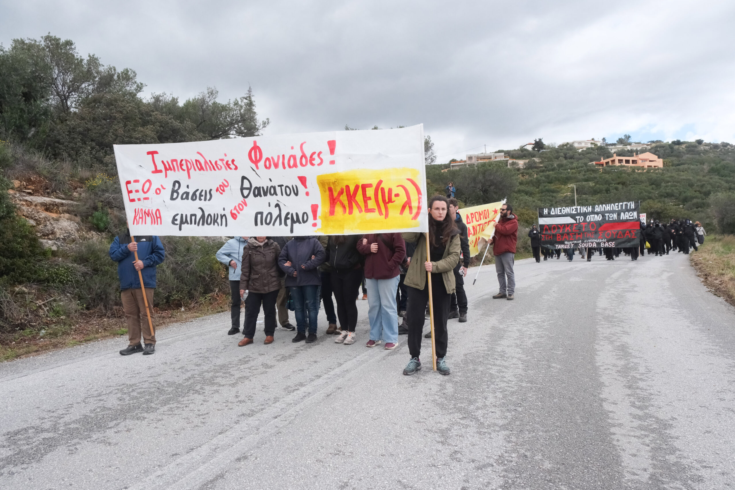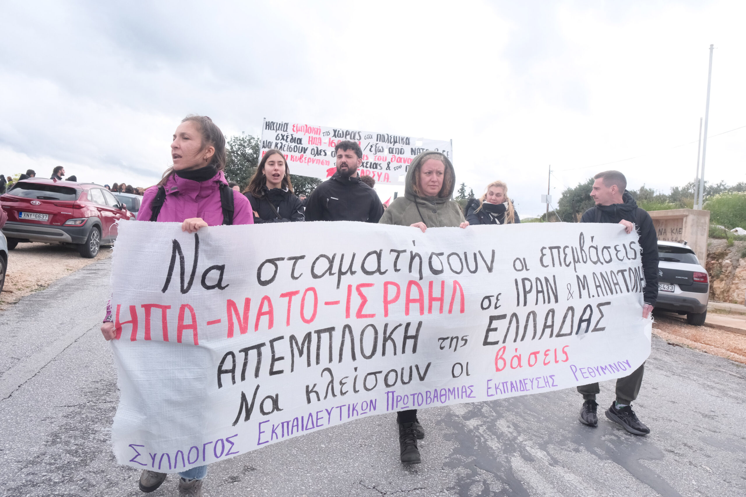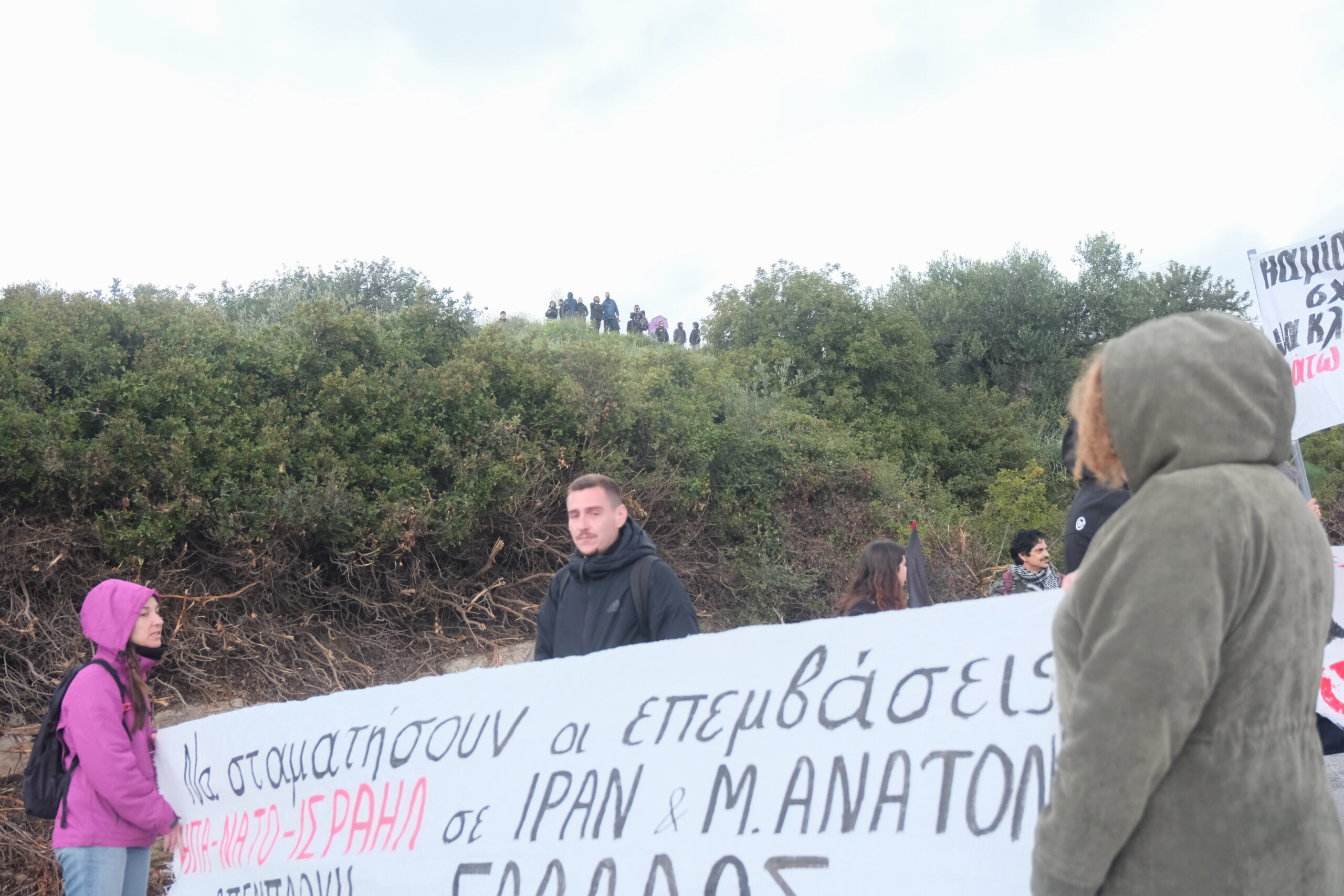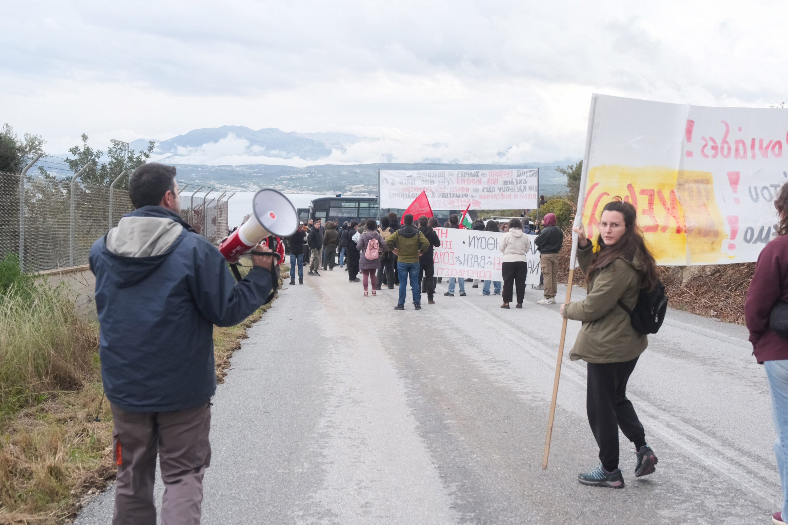 Διαδηλωτές από όλη την Κρήτη αλλά και εκπρόσωποι φορέων και συλλογικοτήτων συμμετείχαν στην πορεία στη βάση η οποία όμως δεν έφτασε μέχρι την πύλη αφού ισχυρές αστυνομικές δυνάμεις βρισκόταν σε σημείο που απόκλειε την όποια πρόσβαση.