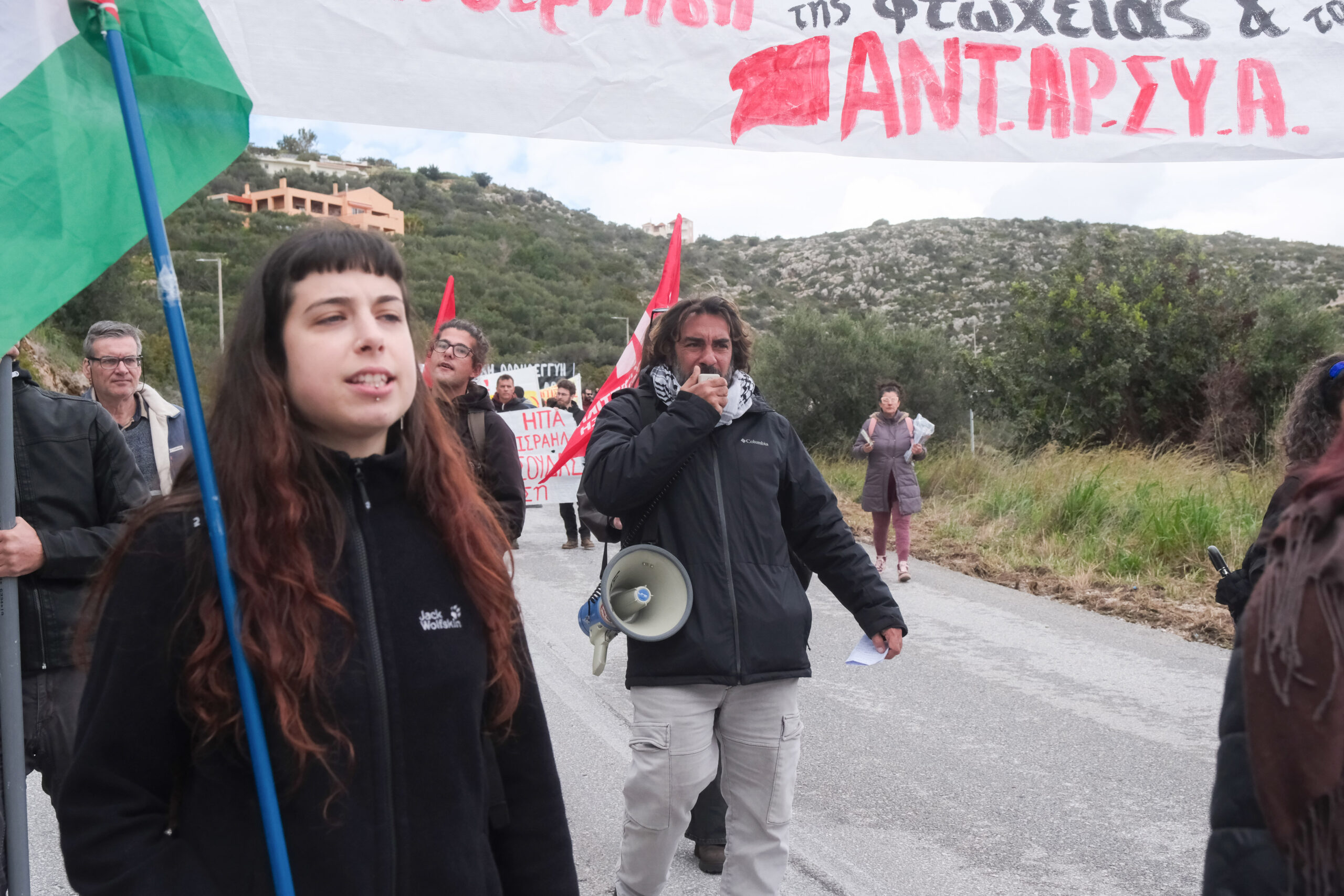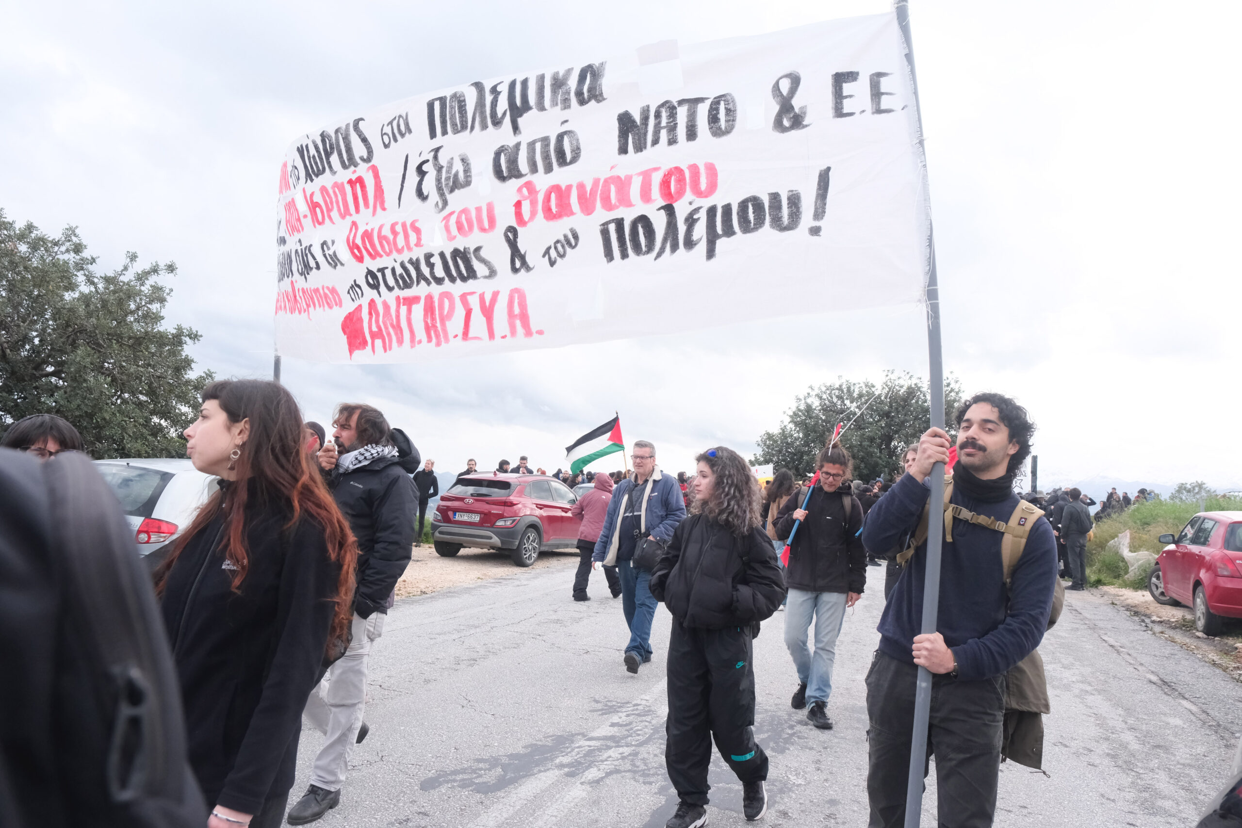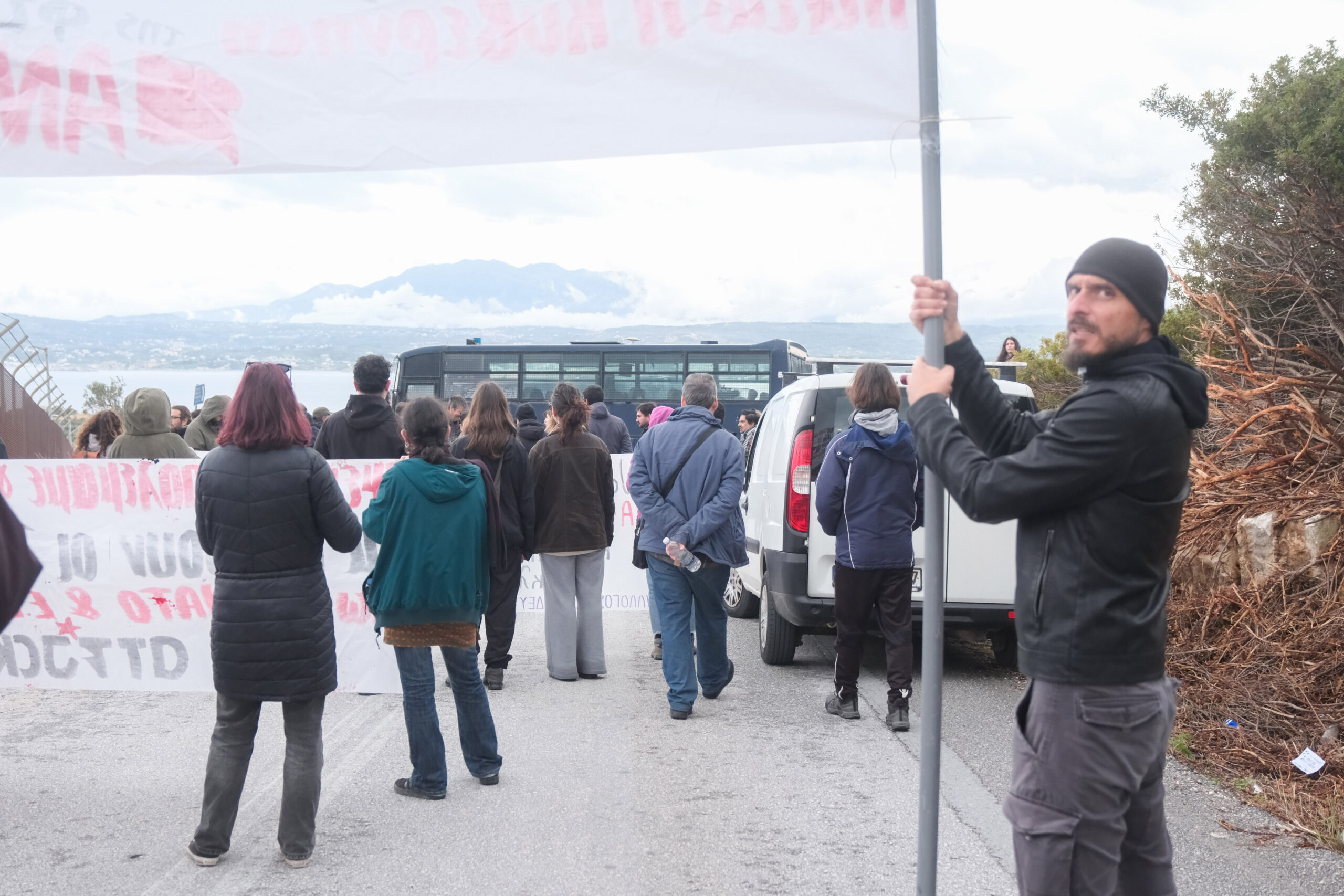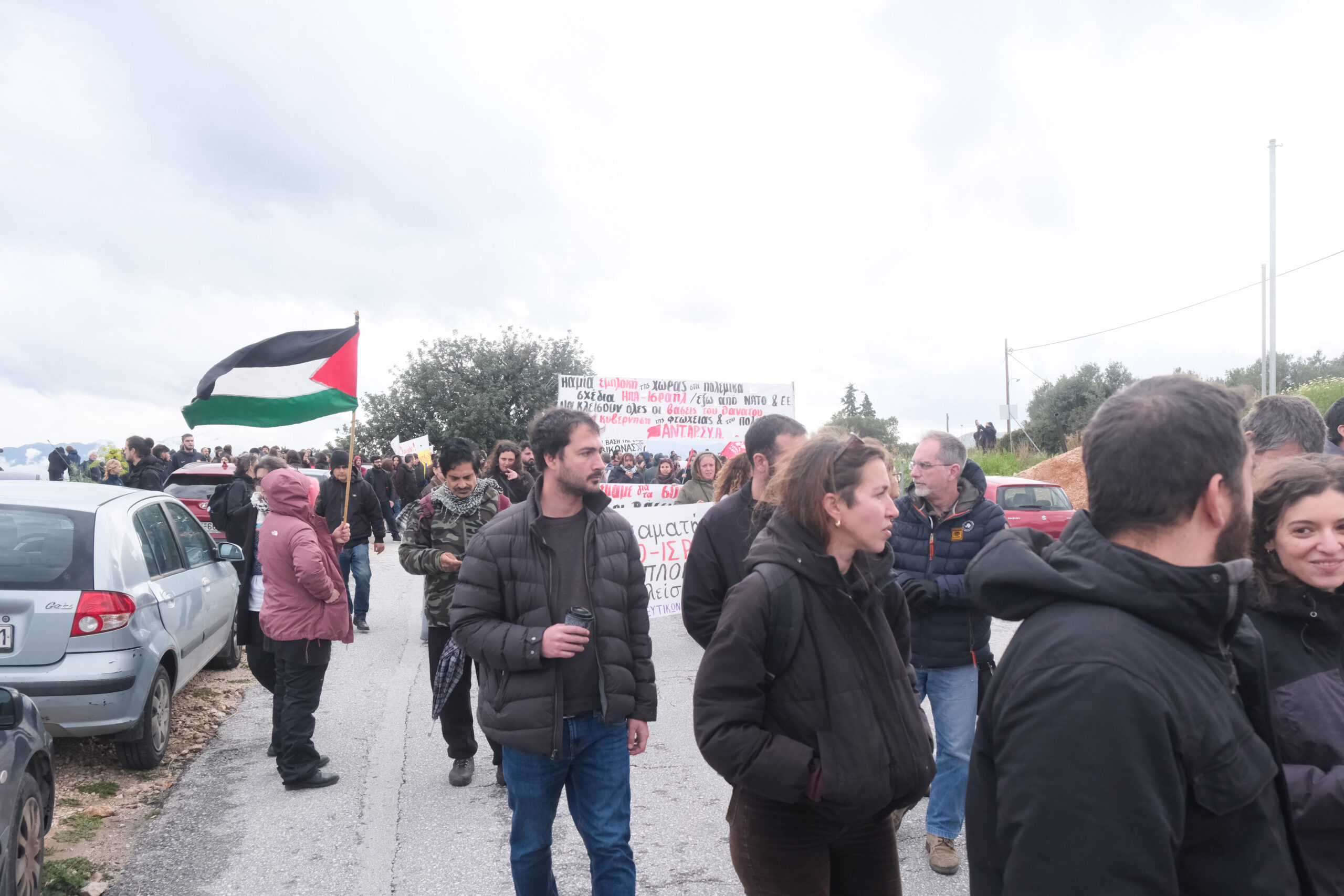 Διαδηλωτές από όλη την Κρήτη αλλά και εκπρόσωποι φορέων και συλλογικοτήτων συμμετείχαν στην πορεία στη βάση η οποία όμως δεν έφτασε μέχρι την πύλη αφού ισχυρές αστυνομικές δυνάμεις βρισκόταν σε σημείο που απόκλειε την όποια πρόσβαση.