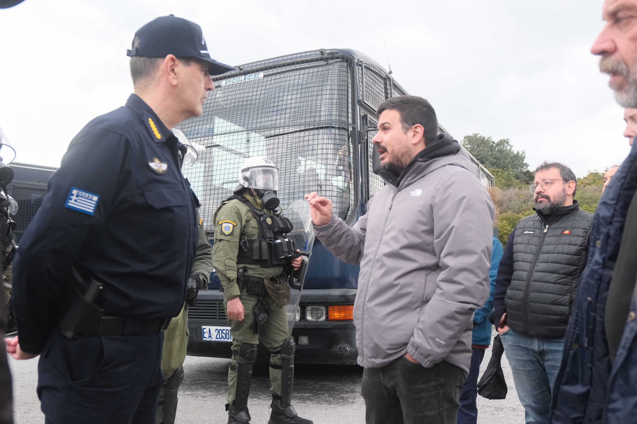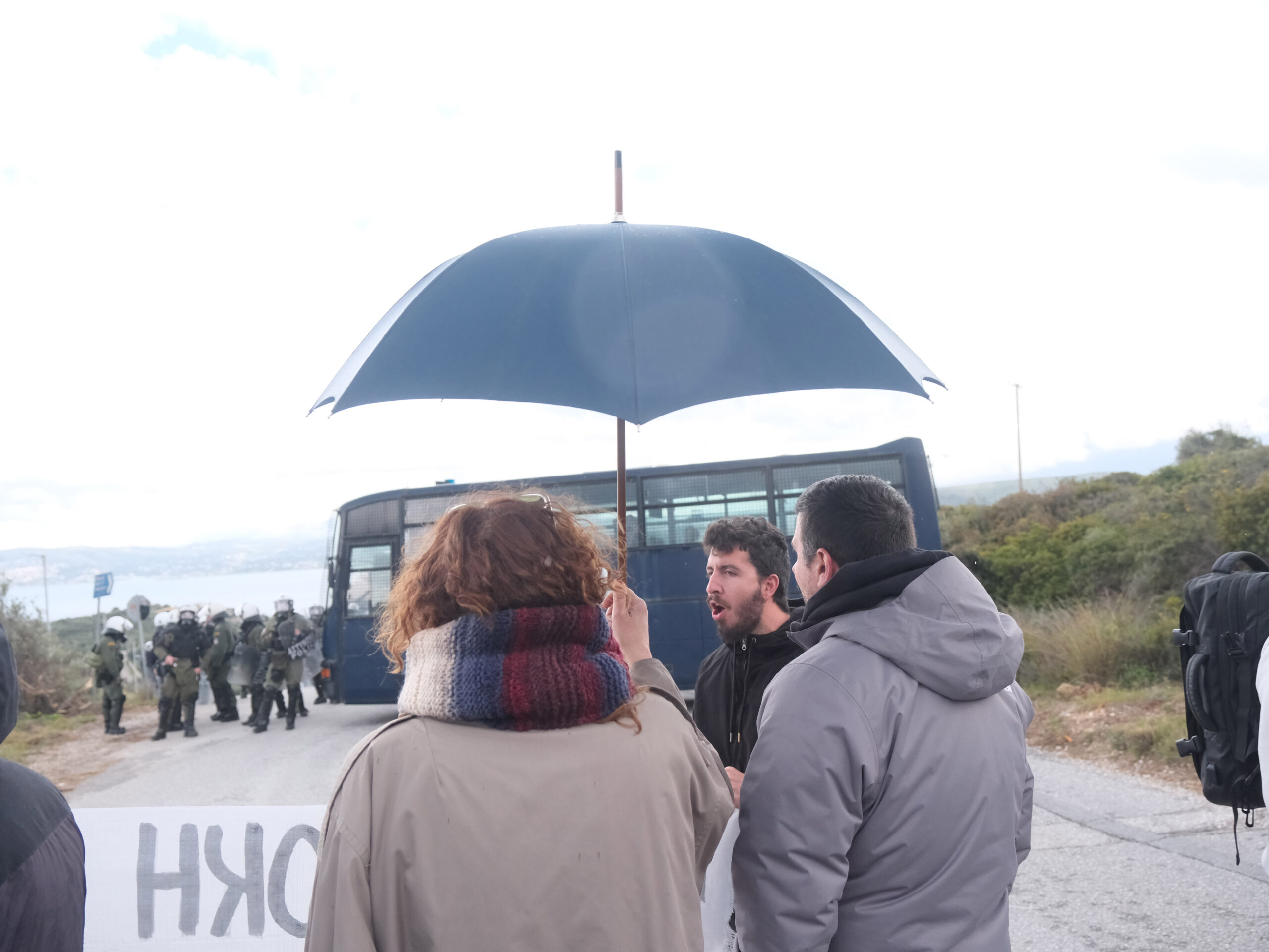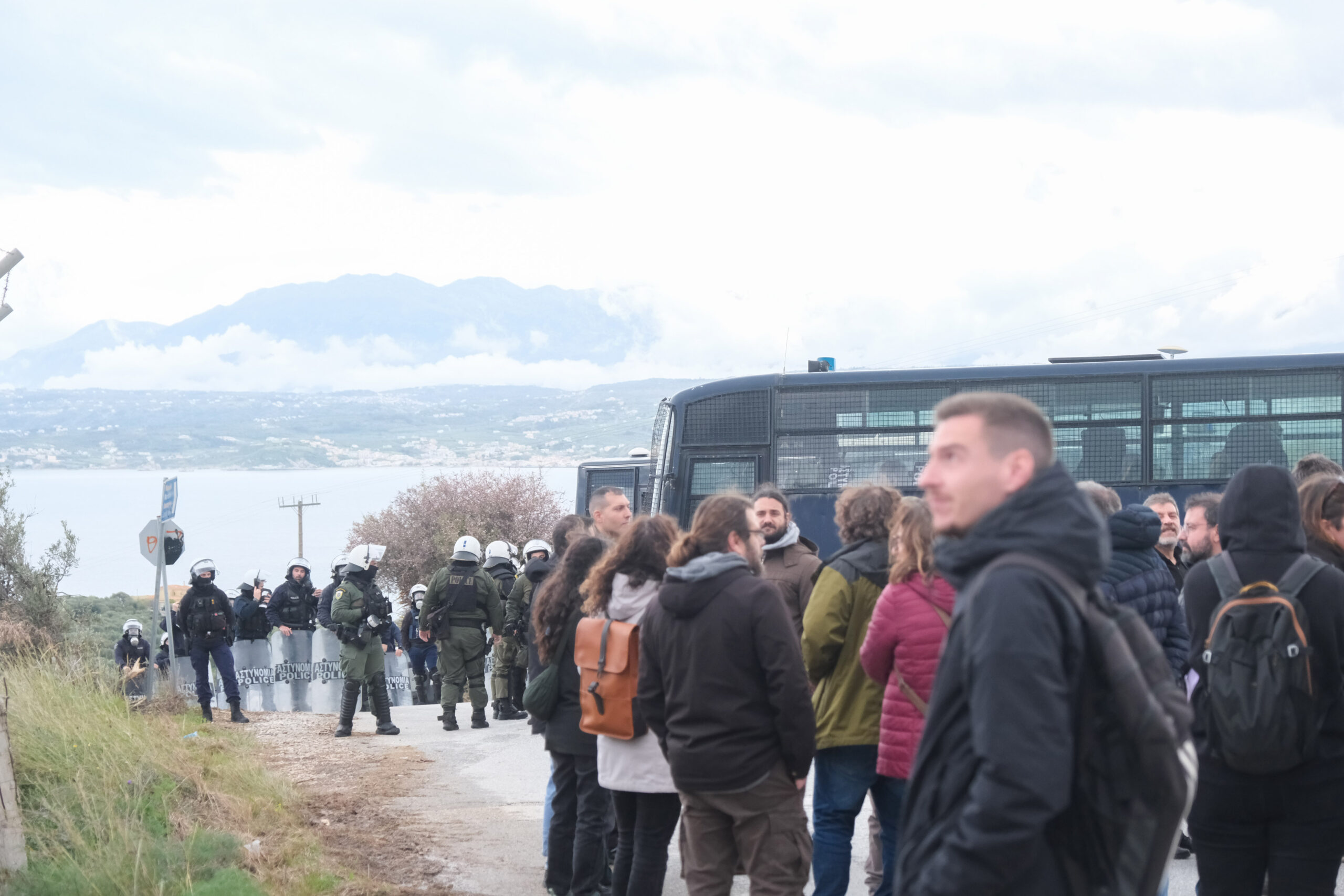 Αποτέλεσμα αυτού ήταν να δημιουργηθεί εκνευρισμός στους διαδηλωτές. Αφού πρώτα εκπρόσωποι προσπάθησαν μέσω συζήτησης με τον αρχηγό της τοπικής αστυνομίας κ. Κανέλλο να επιτραπεί η πρόσβαση, ένα μεγάλο τμήμα διαδηλωτών αποφάσισε να φύγει, όμως μία μερίδα διαδηλωτών ξεκίνησε πετροπόλεμο με την αστυνομία με αποτέλεσμα η αστυνομία να ρίξει δακρυγονία.