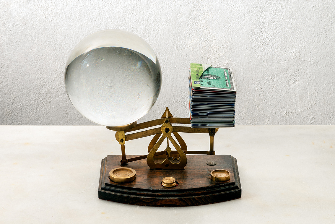 Από το «1.330 γραμμάρια φαιάς ουσίας που συνοψίζουν την ιστορία της ανθρωπότητας, τα πάθη και τις αμφιβολίες της» (2008) – μια εκτύπωση τύπου lambda που απεικονίζει μαύρο γραφίτη σωρευμένο πάνω σε ξύλινο τραπέζι, θέτοντας το φιλοσοφικό ερώτημα «τι είναι πραγματικό και τι ψευδαίσθηση» -έως το ολοκαίνουριο «Άτιτλο» (2025), όπου έχει τοποθετήσει στον έναν δίσκο της ζυγαριάς μια γυάλινη σφαίρα- υδρόγειος χωρίς χώρες, και στον άλλο 37 πιστωτικές κάρτες, ως σχόλιο στους μηχανισμούς του όψιμου καπιταλισμού και την εξάρτησή του από το «πλαστικό» χρήμα, στις δυτικές κοινωνίες, οι επισκέπτες καλούνται να μυηθούν στο εικαστικό λεξιλόγιο και στους διαχρονικούς προβληματισμούς που θέτει η καλλιτέχνις.