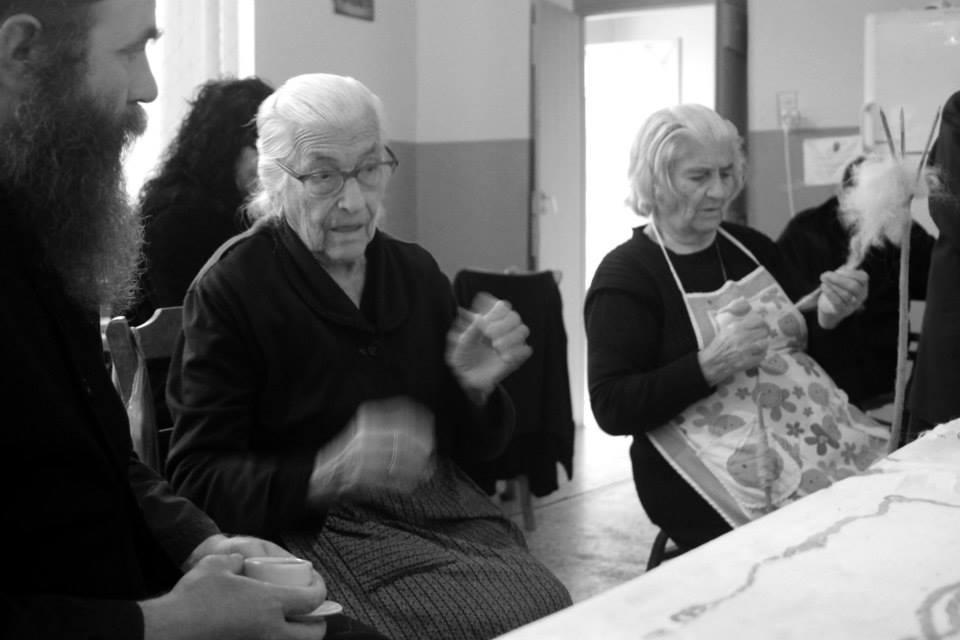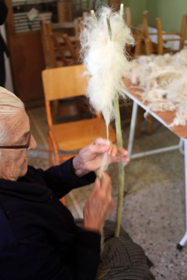 “Και ναι, ζήσαμε την εμπειρία, να ξάσουμε και να γνέσουμε μαλλί από όταν ήταν ακόμη στην αρχική του μορφή, κάτι που μας έδειξαν γυναίκες μεγαλωμένες στο να φτιάχνουν τα δικά τους υφαντά, ρούχα κι εσώρουχα. Κρίμα που πλέον το μαλλί “πετιέται” όπως μας είπαν και οι ίδιες αφού τωρα όλοι πάνε στα “εμπορικά””