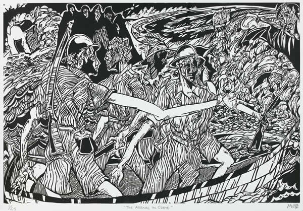 Η “Μάχη στη Γη του Μινώταυρου” είναι μια σειρά έργων του ζωγράφου Michael Winters poy δημιούργησε κατά την 18μηνη διαμονή του στην Κρήτη.